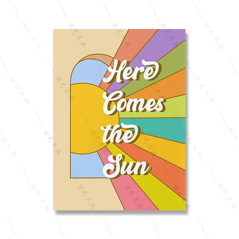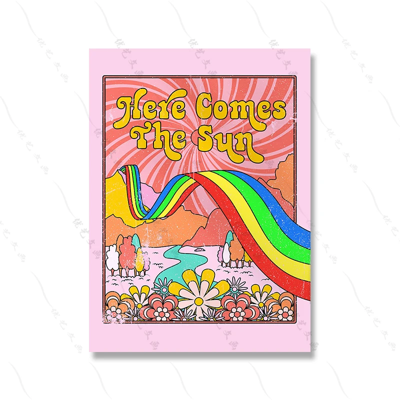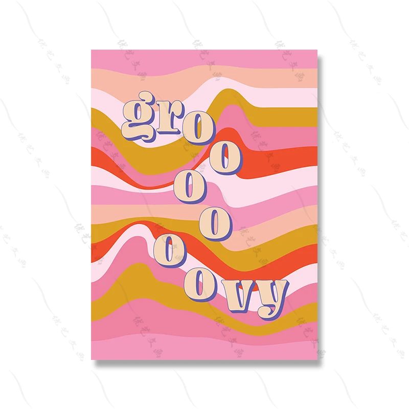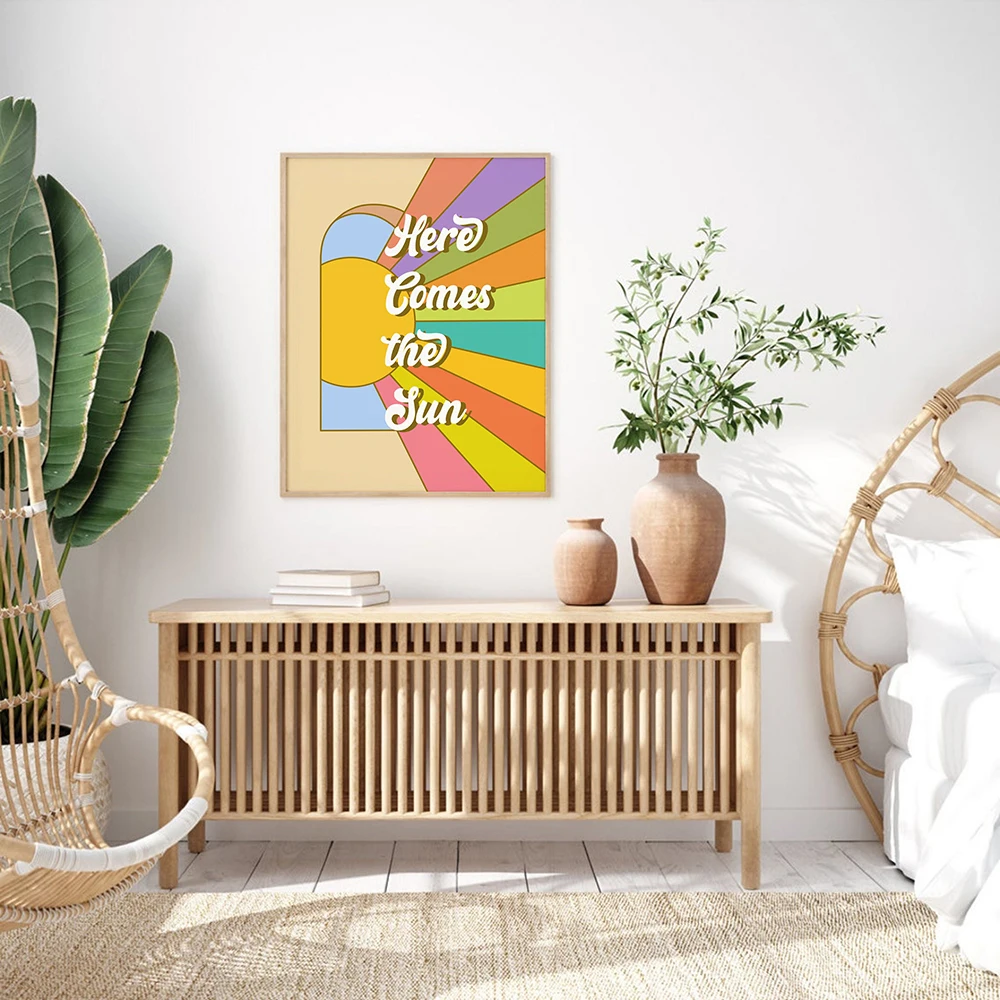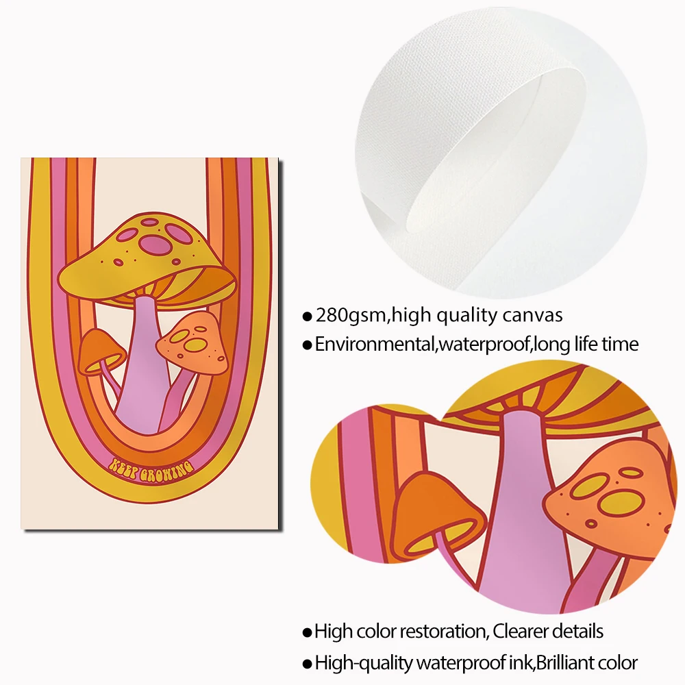 Boho 70s Groovy Ретро красочная Радужная Цитата типография плакат в стиле хиппи Настенная картина Симпатичные грибы Холст Картина гостиная домашний декор