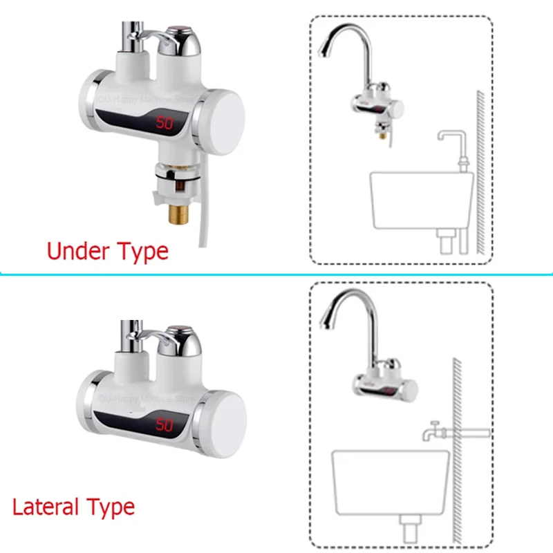 Мгновенный безрезервуарный Электрический нагреватель для горячей воды, смеситель, душевая головка для кухни, ванной комнаты, мгновенный нагрев водонагревателя, водонагреватель светодиодный, европейская вилка