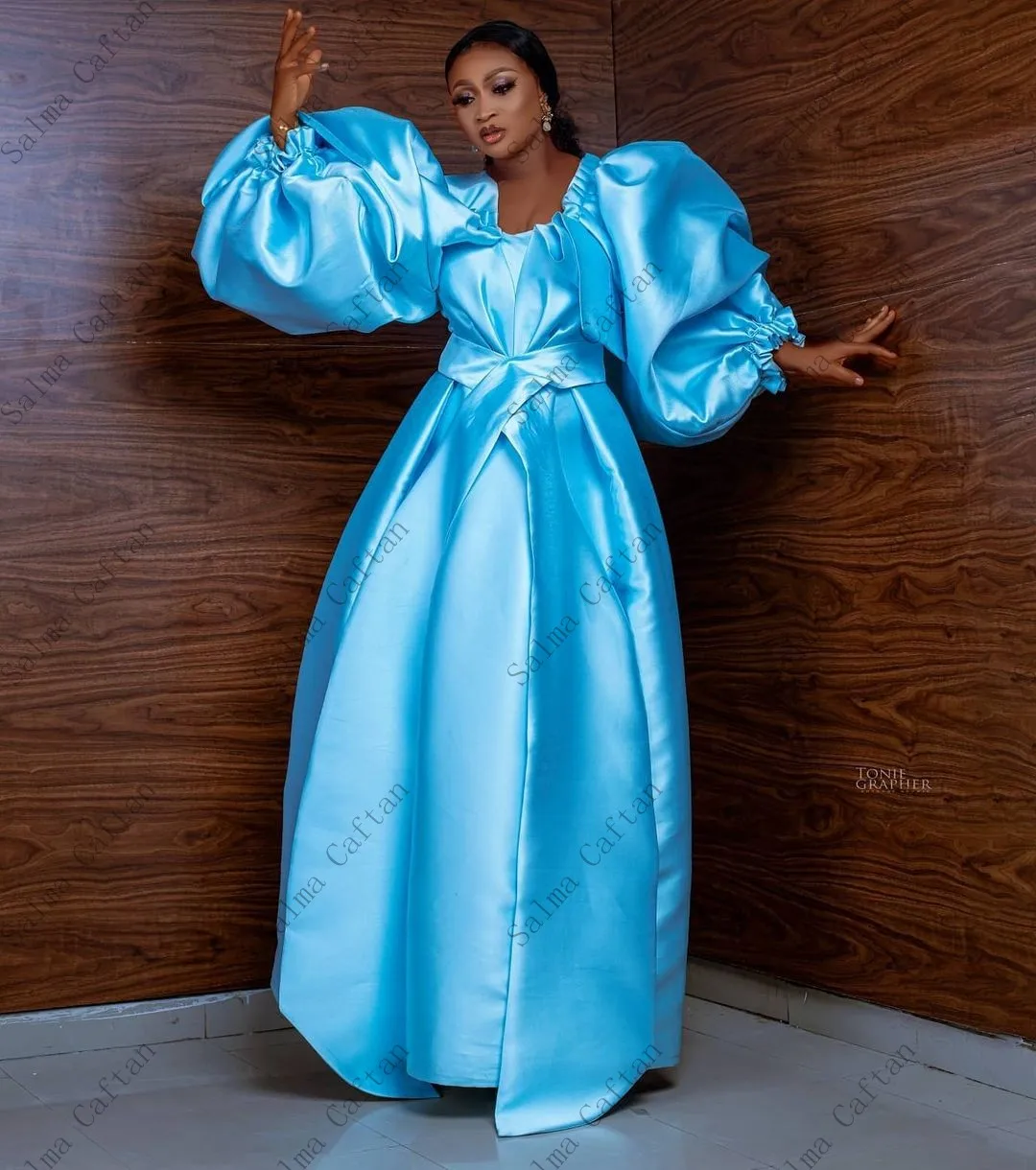 Женское платье с длинным рукавом, голубое Элегантное Изысканное вечернее платье-трапеция до пола, платье для фотографирования, арабского выпускного вечера, индивидуальный пошив