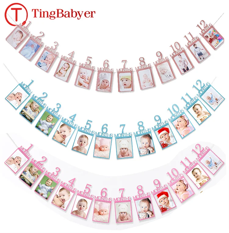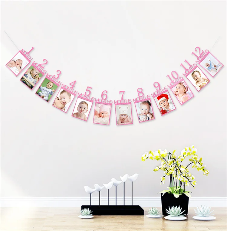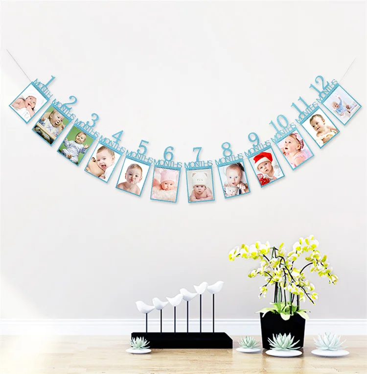 12 месяцы фоторамка баннер с днем рождения, украшение для первого м...