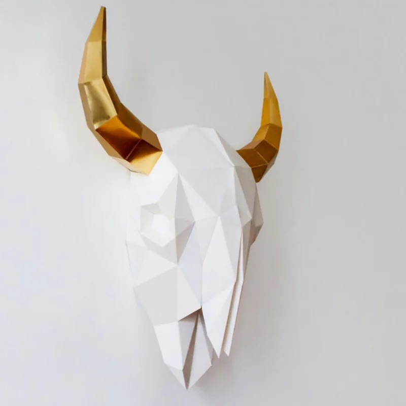 3d бумажная модель в виде черепа быка, бумажная скульптура в виде Головы Быка, карточка в виде животного, модель настенное украшение здания для гостиной, домашний декор