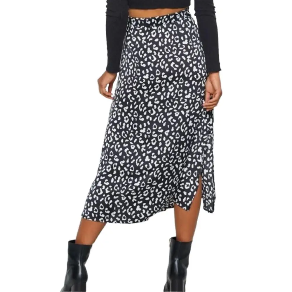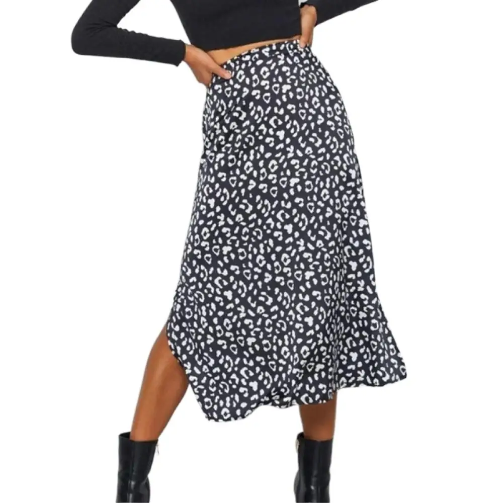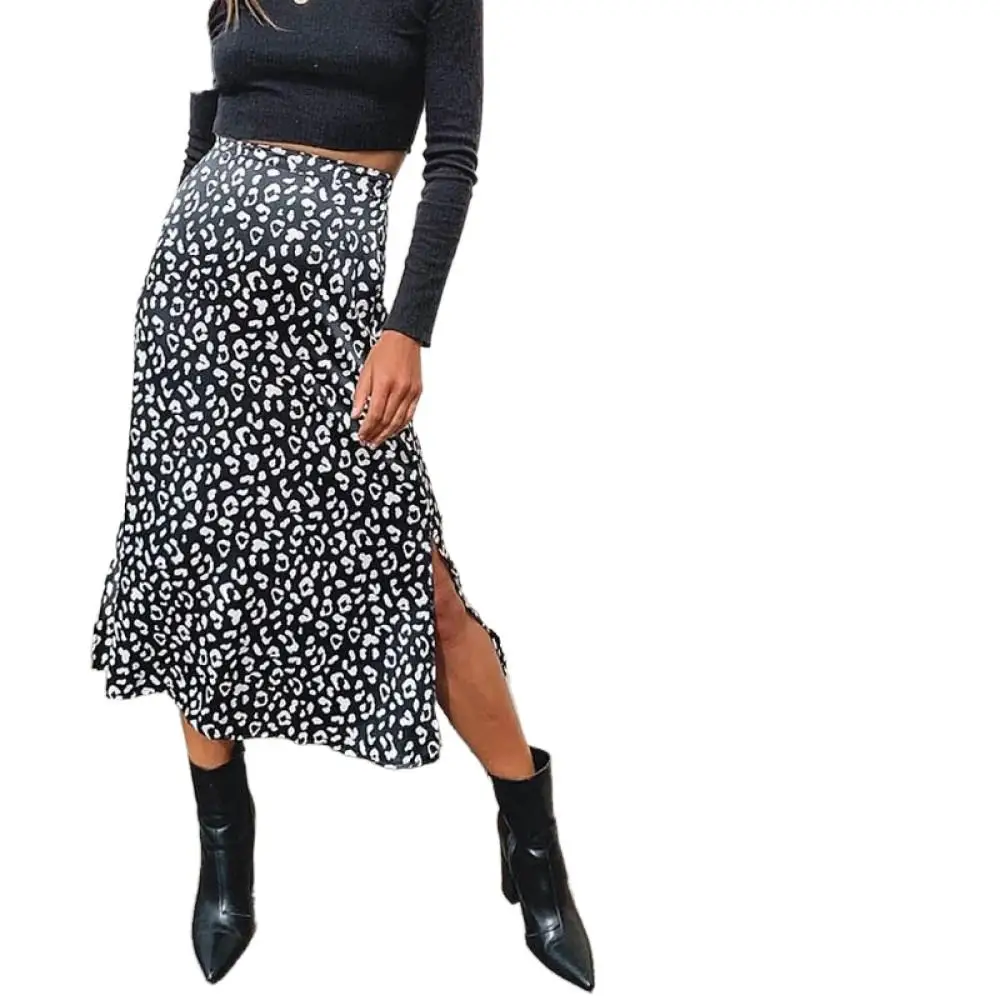 Сексуальная юбка с леопардовым принтом, шифоновая юбка с разрезом, 2022, женская модная Повседневная Длинная юбка, весенне-летняя одежда на молнии, Jupe