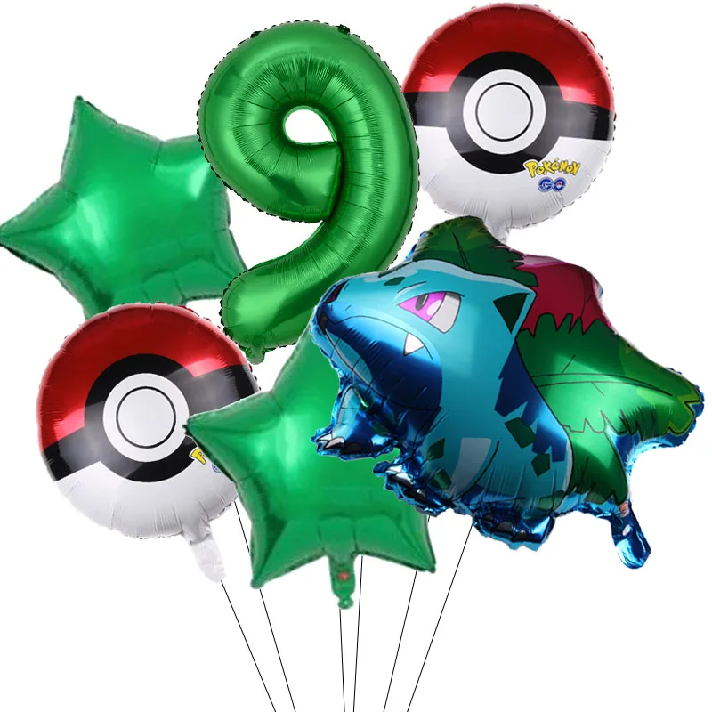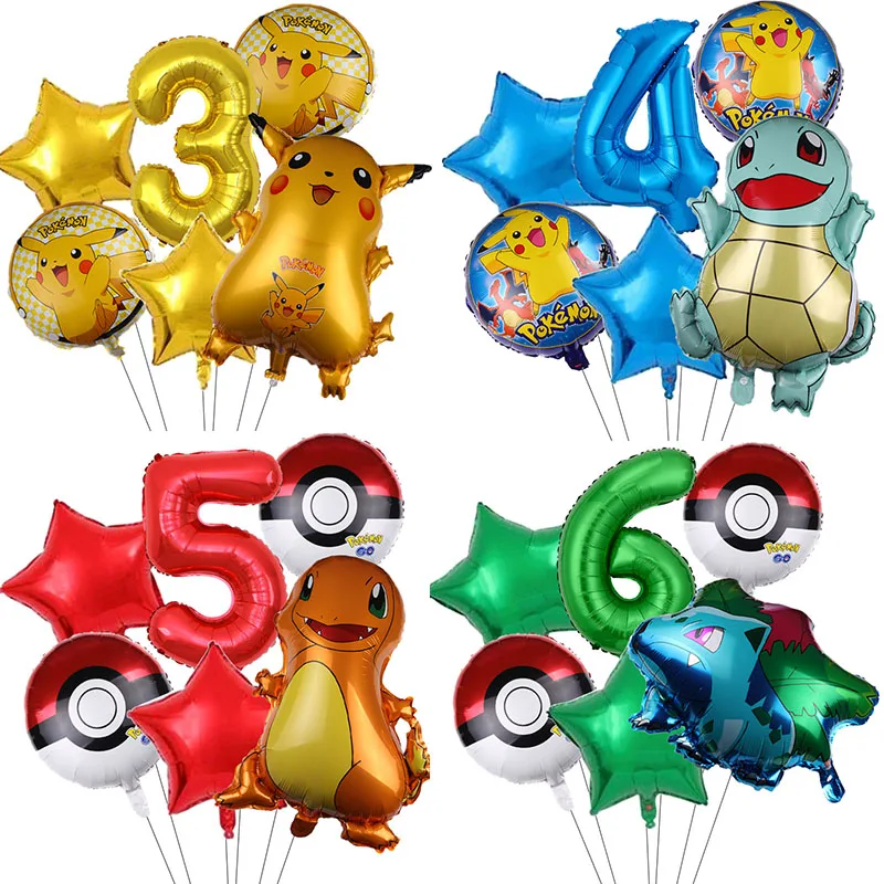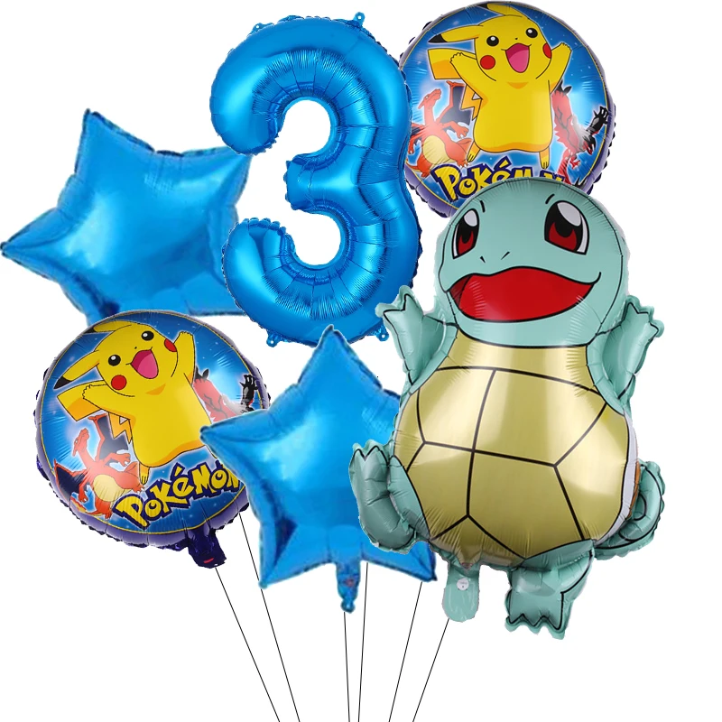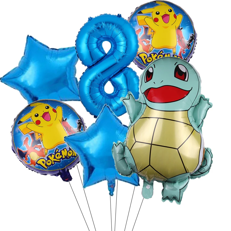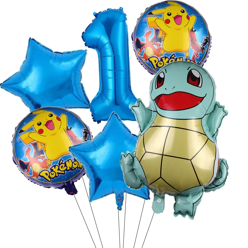 6 шт., Pokemon Series, Pikachu Jenny Turtle, алюминиевый воздушный шар для детей, 32 дюйма, количество воздушных шаров, вечерние воздушные шары для дня рождения