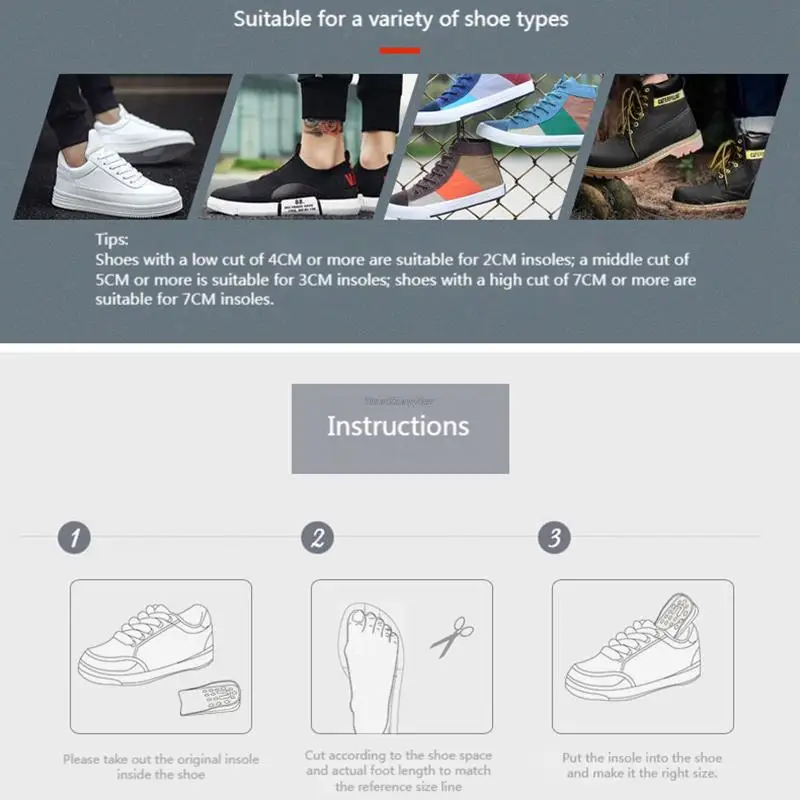 Стельки унисекс невидимые увеличивающие высоту, регулируемая вставка для обуви, поддержка роста, абсорбирующие вставки для ног