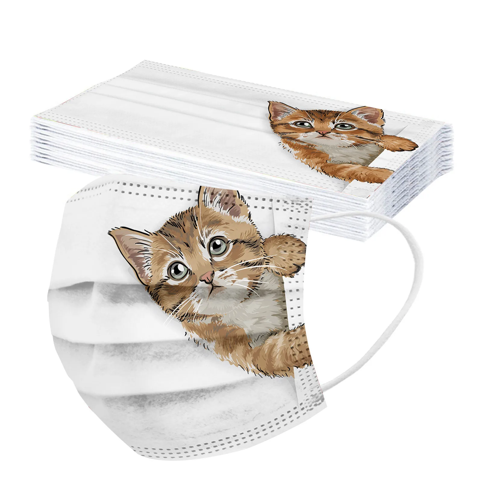 10 шт., одноразовые маски для лица с кошачьим принтом