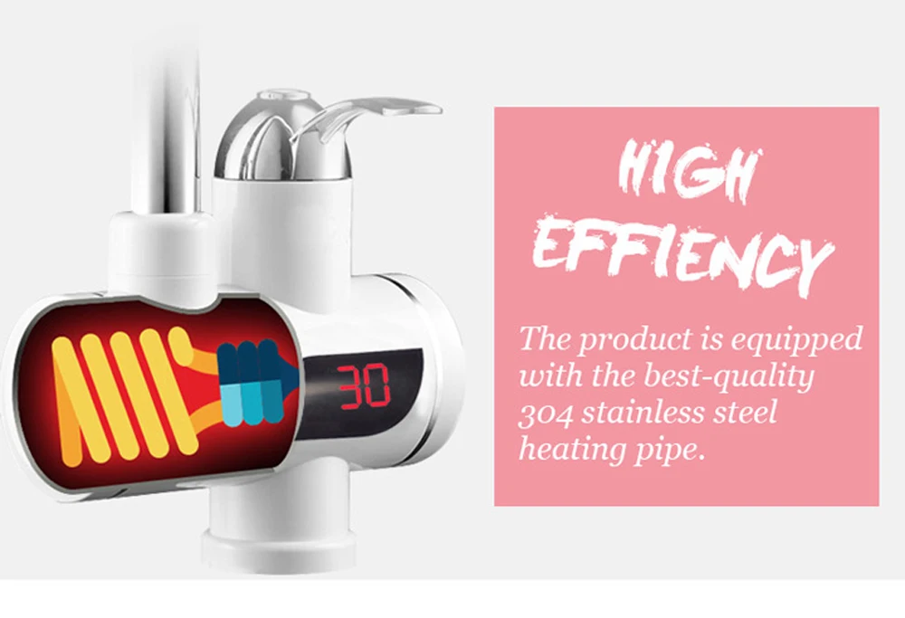 Мгновенный Электрический нагреватель воды без резервуараКухонный мгновенный нагревательный кранВодонагревательСветодиодный дисплей температурыСиликоновая розетка из АБС-пластикаТруба из нержавеющей сталиH59A уровень окружающей среды рафинированной медиШтепсельная Вилка европейского стандарта