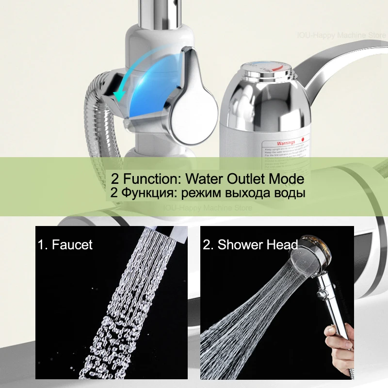 【Водонепроницаемость 】 Описание товараЭлектрический нагреватель воды кранНазвание продукта: быстрый Электрический кранНоминальное напряжение: 220 В/50 ГцНоминальная мощность: 3000 ВтРабочая Давление: 0,04-0,5 МПаКласс водонепроницаемости: IPX4Шнур Длина: около 1,1 мТип вилки: GN-901Диаметр: общий диаметрРежим подачи: под/боковым входомМатериал поверхности трубы: Композитное покрытиеКатушка: Алмазная керамическая катушкаНагревательный элемент: медный вкладыш высокой чистотыОсновной материал: H59A уровень окружающей средыМедь + ABS инженерные пластмассы【Прочие аксессуары 】 Описание товараРазмер душевой головки: около 26x7.6x3.8 смДлина шланга: 150 смКронштейн: без перфорации