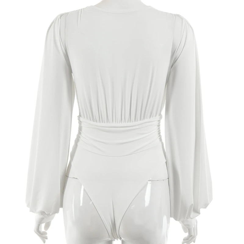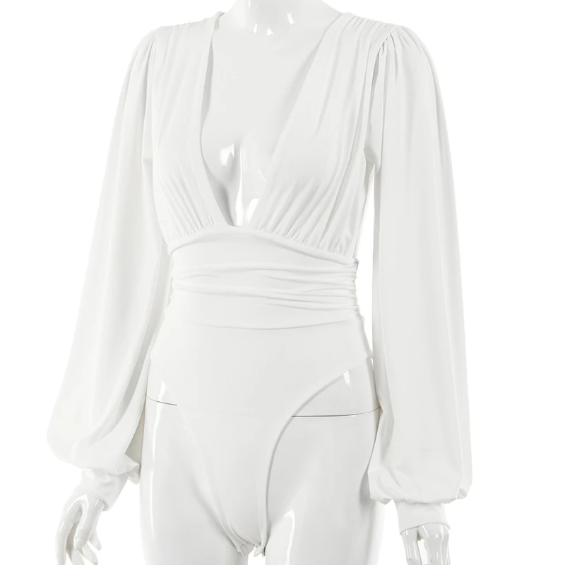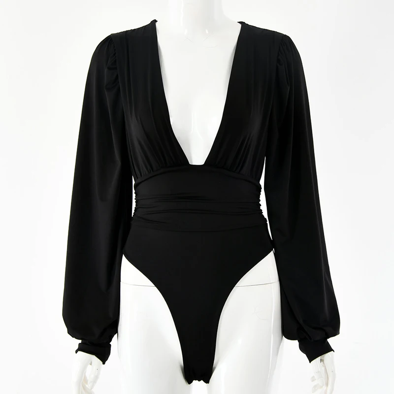 Сексуальные облегающие комбинезоны вечерние глубоким V-образным вырезом, вечерний клубный мини-топ, Элегантные зимние и осенние шикарные боди с рукавами-фонариками