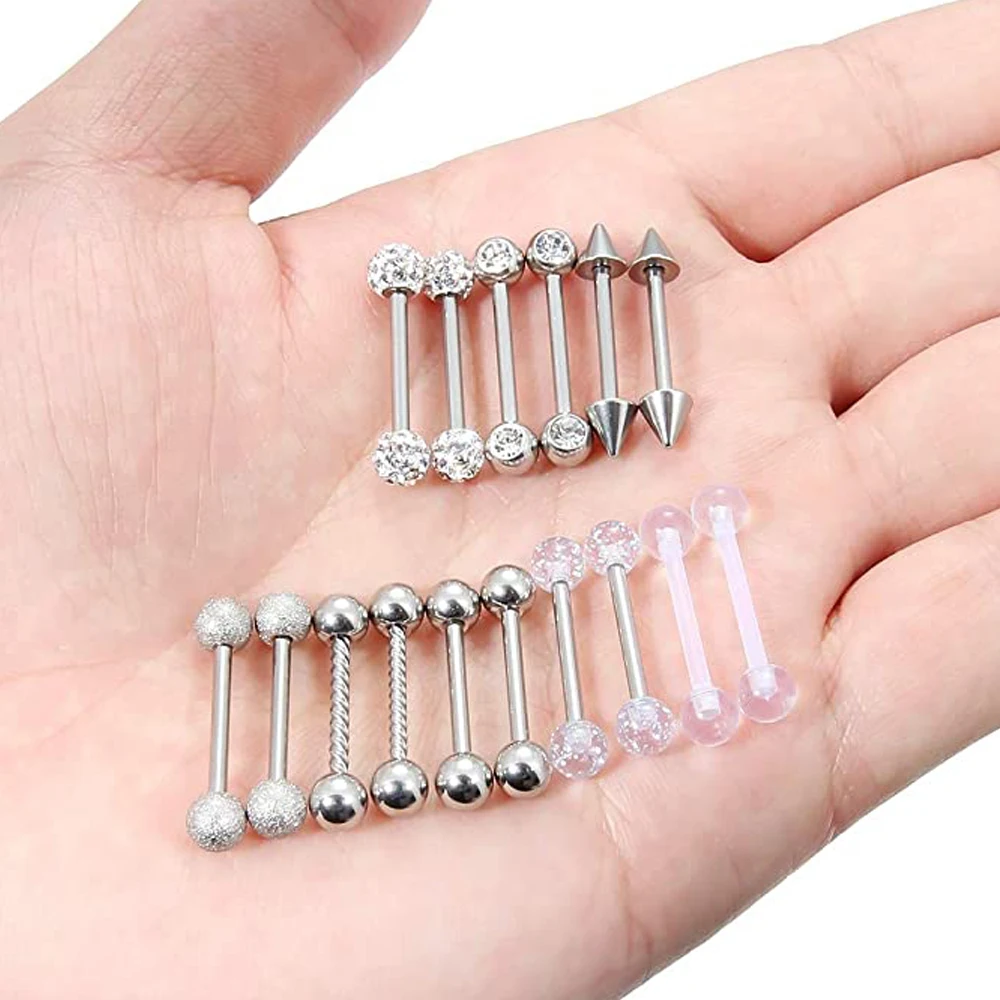 14 Калибр 316L хирургическая стальная штанга, смешанный стиль s (каждый стиль одна пара), многофункциональный пирсинг для сосков, языка, уха хряща и так далее. Разумная цена на ювелирные изделия для тела, заслуживает покупки.