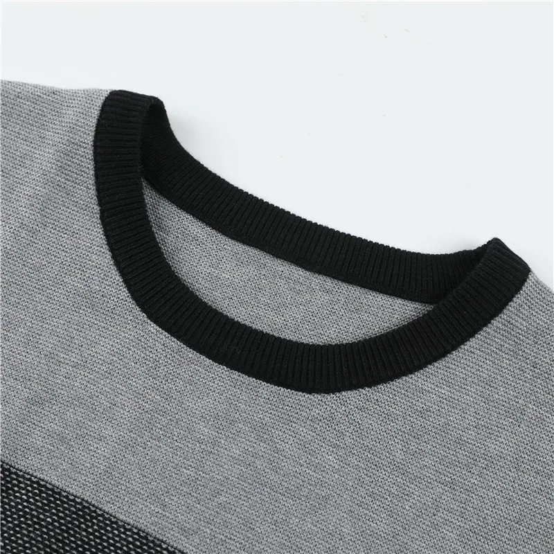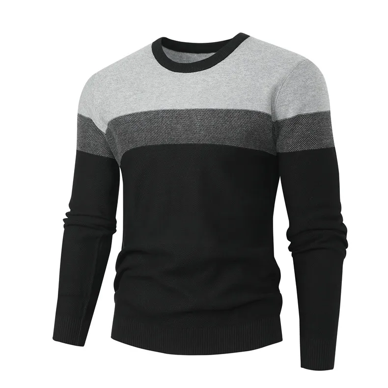 Мужской трикотажный пуловер с круглым вырезом, серый или черный