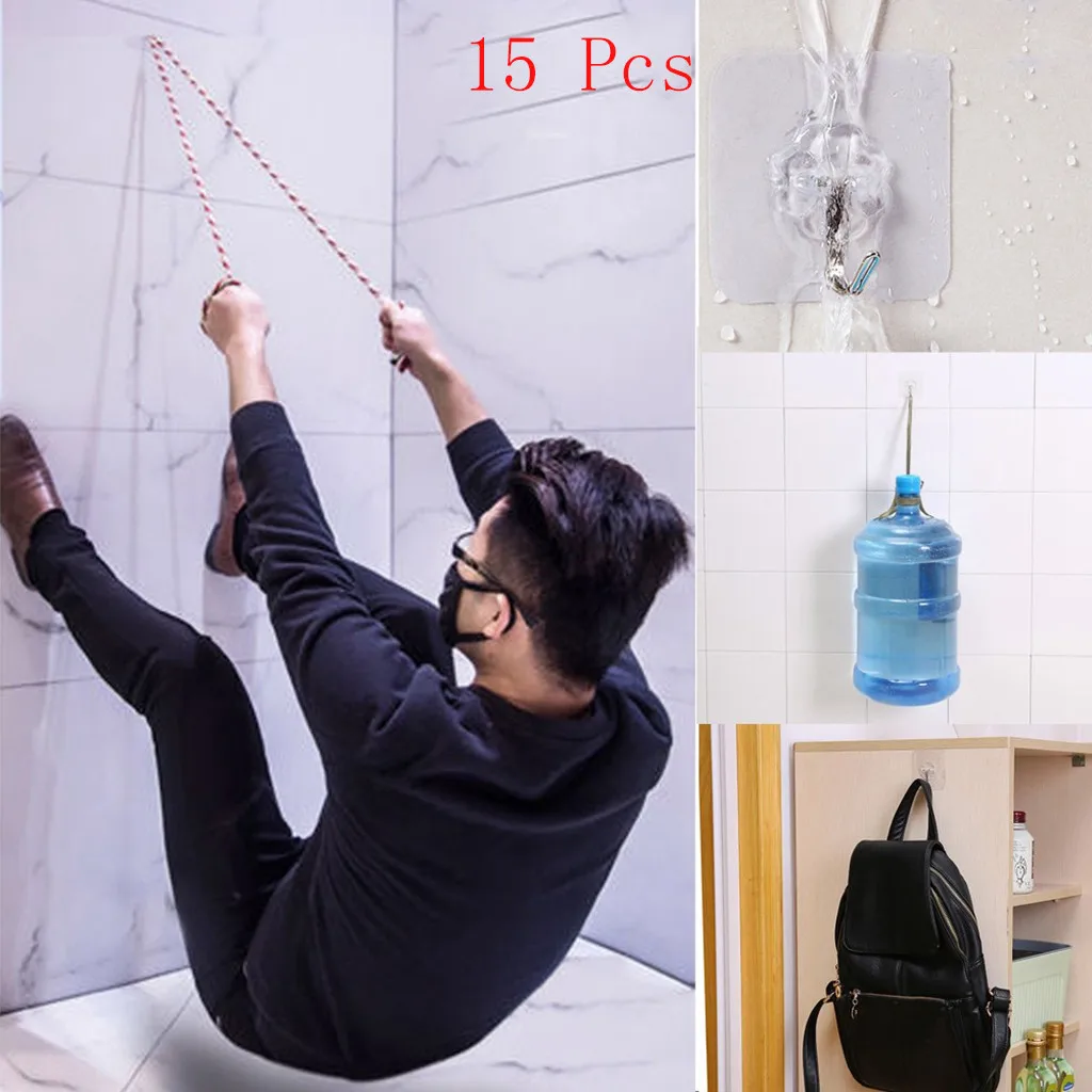Прозрачные настенные крючки, прочные самоклеящиеся вешалки для двер...