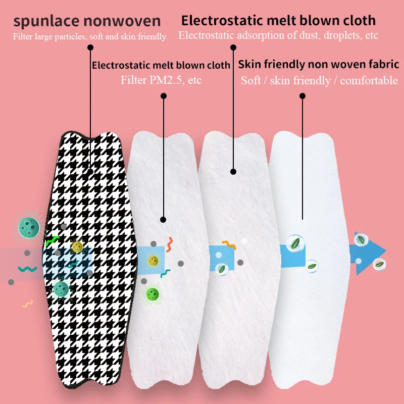 10 _ KN95 маска, Корейская маска для лица с принтом, четырехслойная многослойная Женская тканевая респираторная Защитная антипригарная маска для губ