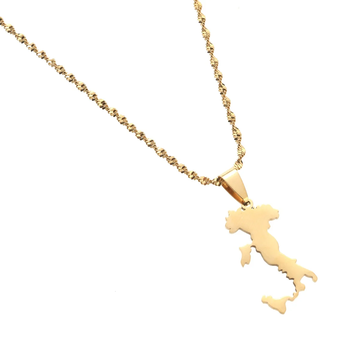 Ожерелье с подвеской в виде карты Италии и Сицилии из нержавеющей стали