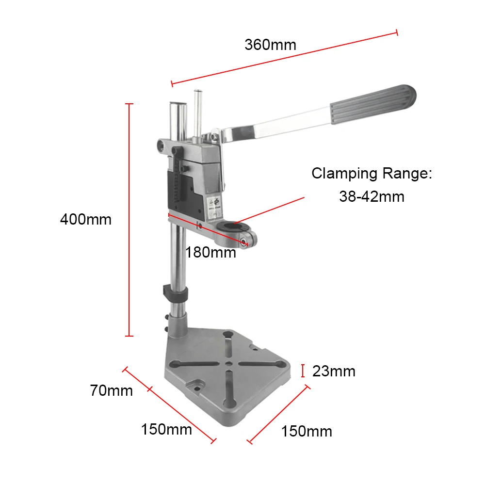 Пластиковая крепежная крышка, регулируемый диапазон патрона держателя 38-42 мм. Если электрическая дрель свободная, вы можете обрезать пластиковую крышку, чтобы зафиксировать ее.