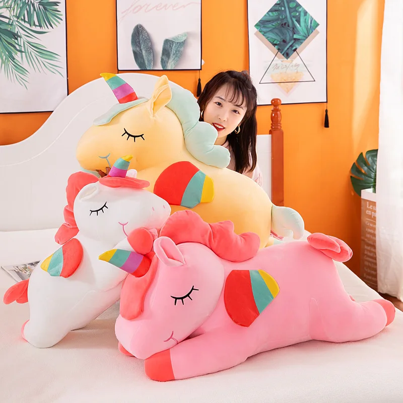 Плюшевые игрушки 30-100 см, большая Лежащая кукла-единорог, удобная подушка, детский подарок, кавайная декомпрессионная плюшевая подушка для ребенка на день рождения