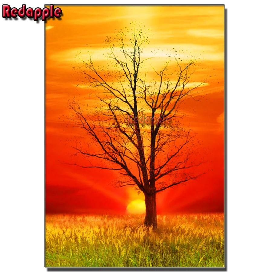 Полноформатная алмазная живопись, закат, дерево 5D, квадратная картина, единорог, мозаика, жизнь, дерево, ландшафт, домашний декор
