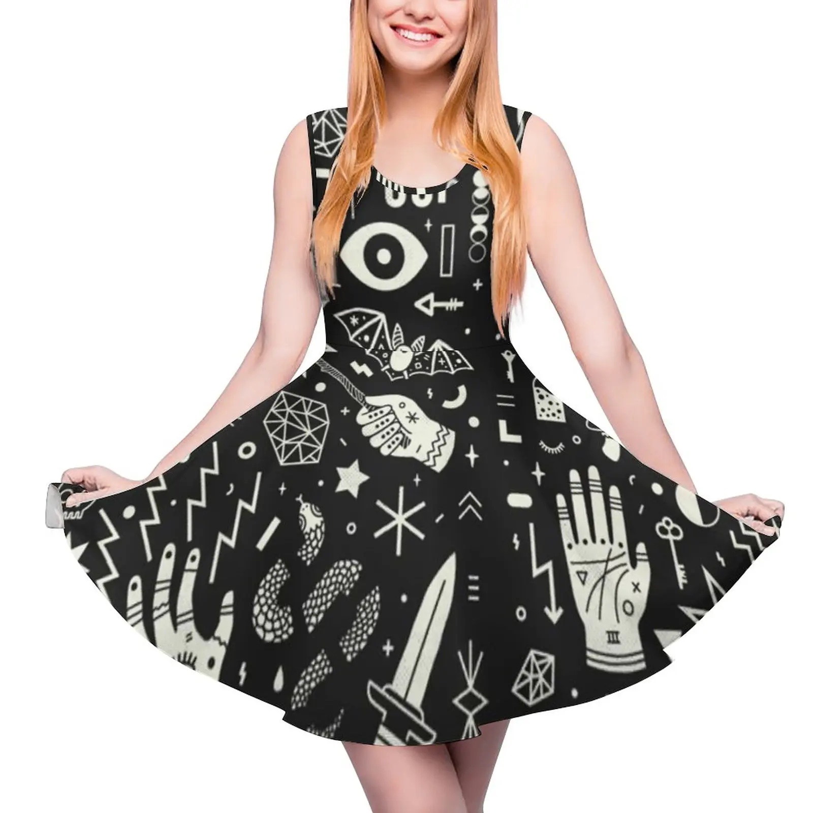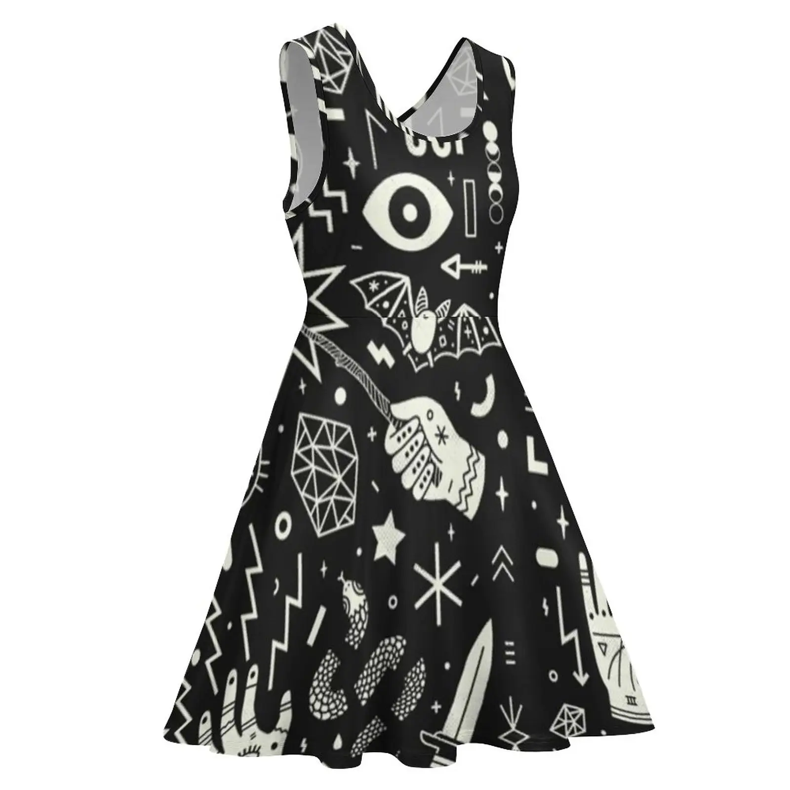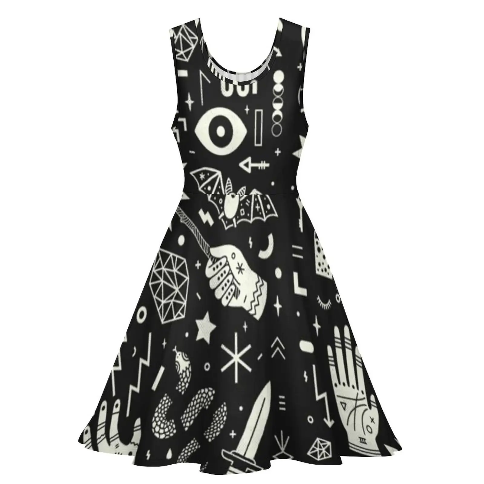 Платье для Хэллоуина, жуткое осеннее платье с принтом, распродажа, молодежное односекционное платье в стиле ретро