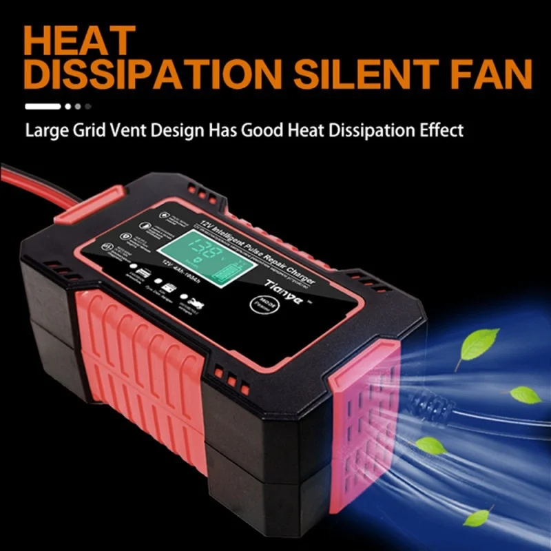 Автомобильное зарядное устройство 12 В 6 А, интеллектуальная быстрая зарядка, импульсный ремонт, полный автоматический остановка, два режима, свинцово-кислотный для мотоциклаавтомобиля