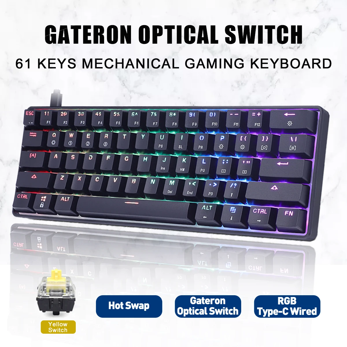 Проводные механические клавиатуры GK61 RGB Type-C, 61 клавиша, оптический переключатель Gateron, горячая замена, программируемые игровые механические клавиатуры