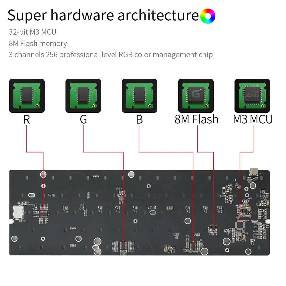 Спецификация:-Модель: GK61-Keycap: ABS двухцветная инъекция (обновленная версия)-Нижний чехол: ABS нижний чехол-Подсветка: полноцветный RGB/около 16,8 миллионов цветов-Раскладка: 61 клавиша-Интерфейс: проводной Type-C-Длина кабеля: 1,5 м-Размер: 293*103*40 мм-Вес: 0,78 кг-Совместимость с драйверами: поддержка win/не поддерживает Mac os-Переключатель: оптический переключатель GateronОсобенности:◆ Около 16,8 миллионов цветов истинных RGB клавиатуры, с драйвером может быть настроен с массивными световыми эффектами.Класс водонепроницаемости IP68.◆ Срок службы кнопки всего в два раза больше, чем у обычной механической оси, и срок службы кнопки составляет около 100 миллионов раз.◆ Музыкальный Ритм Светильник эффект, светильник эффектом движения с ритм музыки.◆ Мощные игровые макросы, которые могут быть установлены различными функциями, макросъемкой.◆ 3-х слойные редактируемое функция загрузки, FN1/FN2/FN3 опеределяемый пользователем.◆ Супер аппаратная архитектура. 32-битный M3 мастер MCU 8M Flash бортовой в автономном режиме хранения 3 канала 256-уровень профессионального цветная (RGB) чип управления.◆ Программируемый полный ключ, множество наборов специальных значений функционального ключа.◆ Более стабильный и удобный с интерфейсом USB Type-c.◆ Существуют различные световые эффекты в базе программного обеспечения драйвера для пользователей для загрузки и обновления.