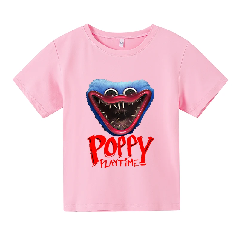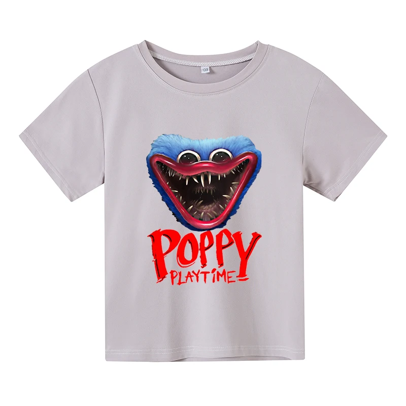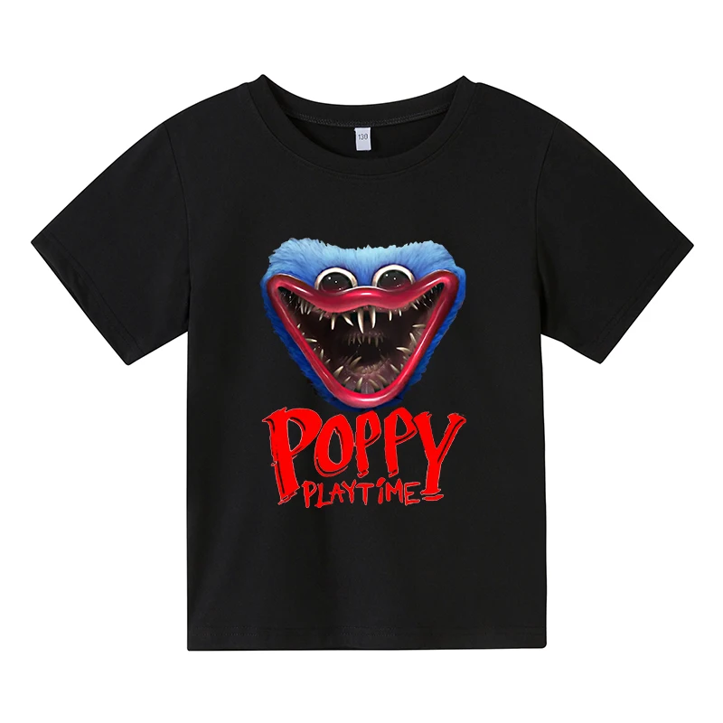 Новинка, летняя хлопковая детская футболка Huggy Wuggy с принтом ужасов и мака, универсальная Футболка большого размера с круглым вырезом и коротким рукавом для девочек и мальчиков