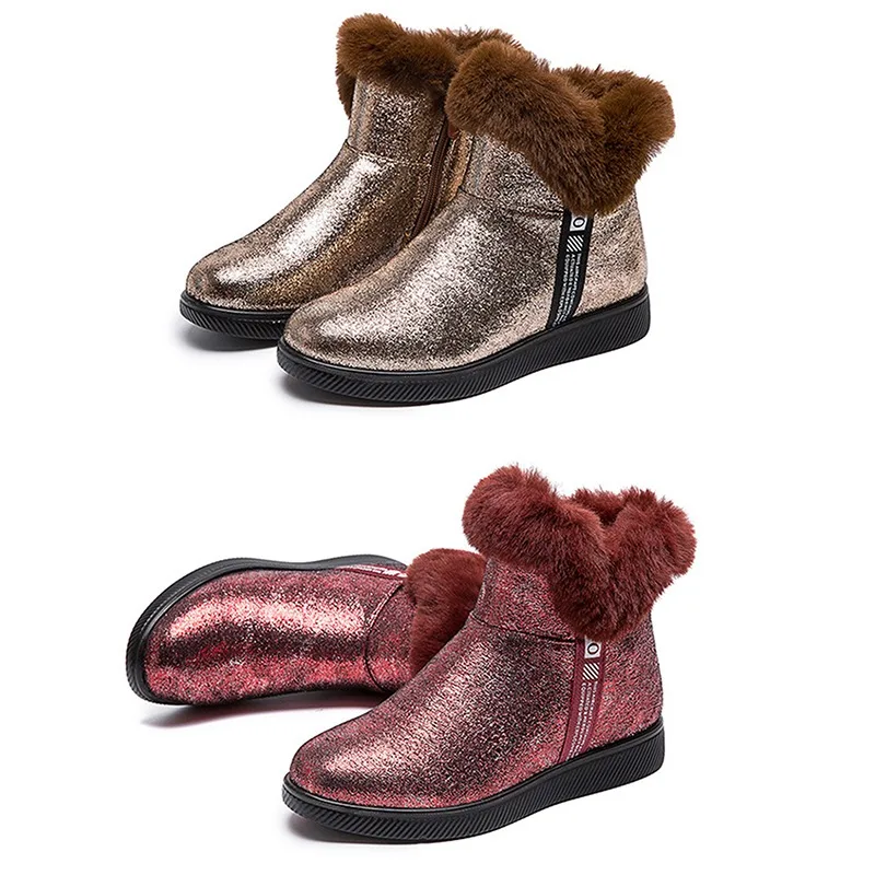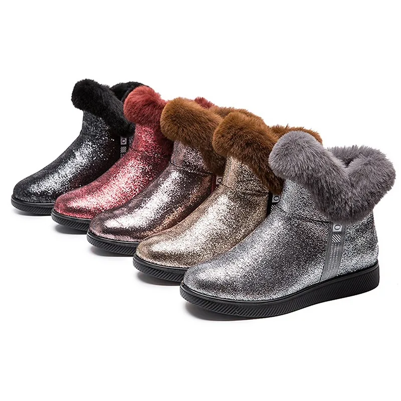 Зимние новые женские ботинки с блестками, зимние ботинки, женская теплая женская обувь из хлопка и бархата, женская обувь большого размера