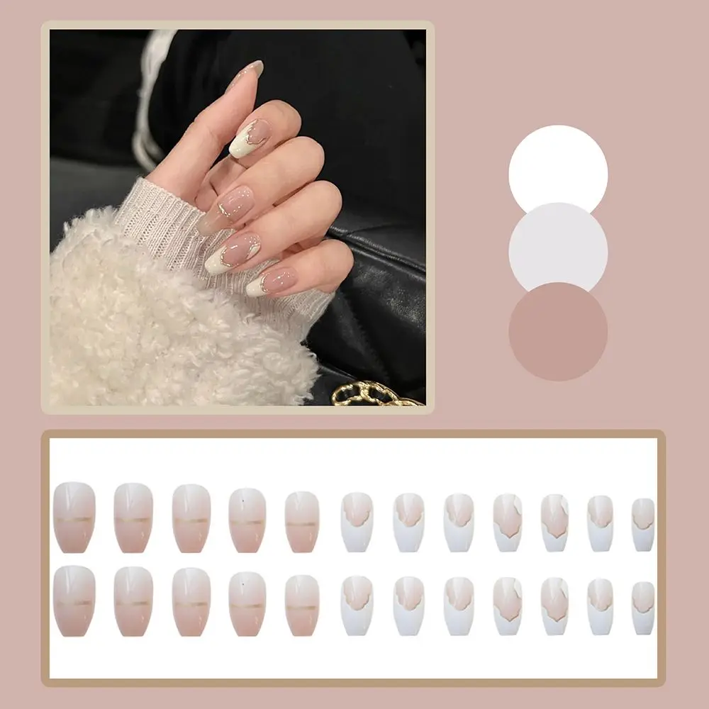 24 шт.компл. гвозди накладные ногти средней длины съемный розовый Б...