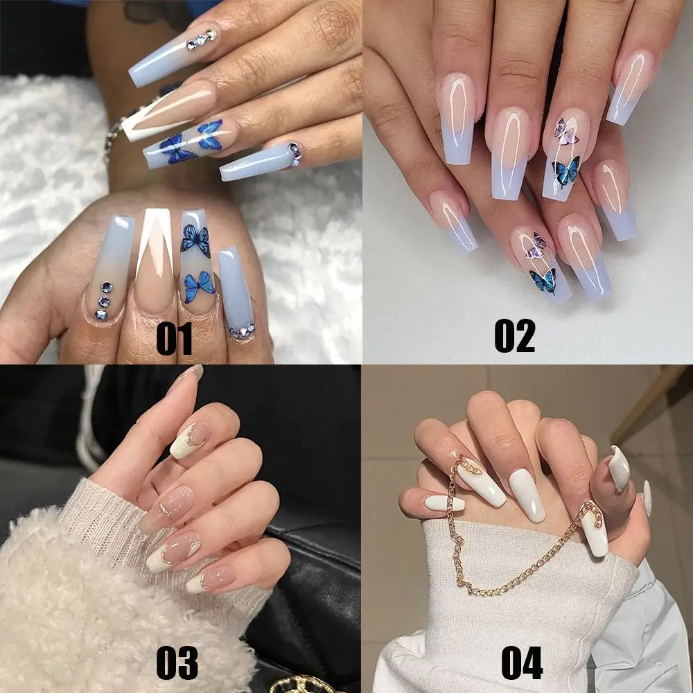24 шт.коркор. накладные ногти с изображением синей бабочки, французская балерина, гроб, съемные ногти с полным покрытием, накладные ногти, накладные ногти