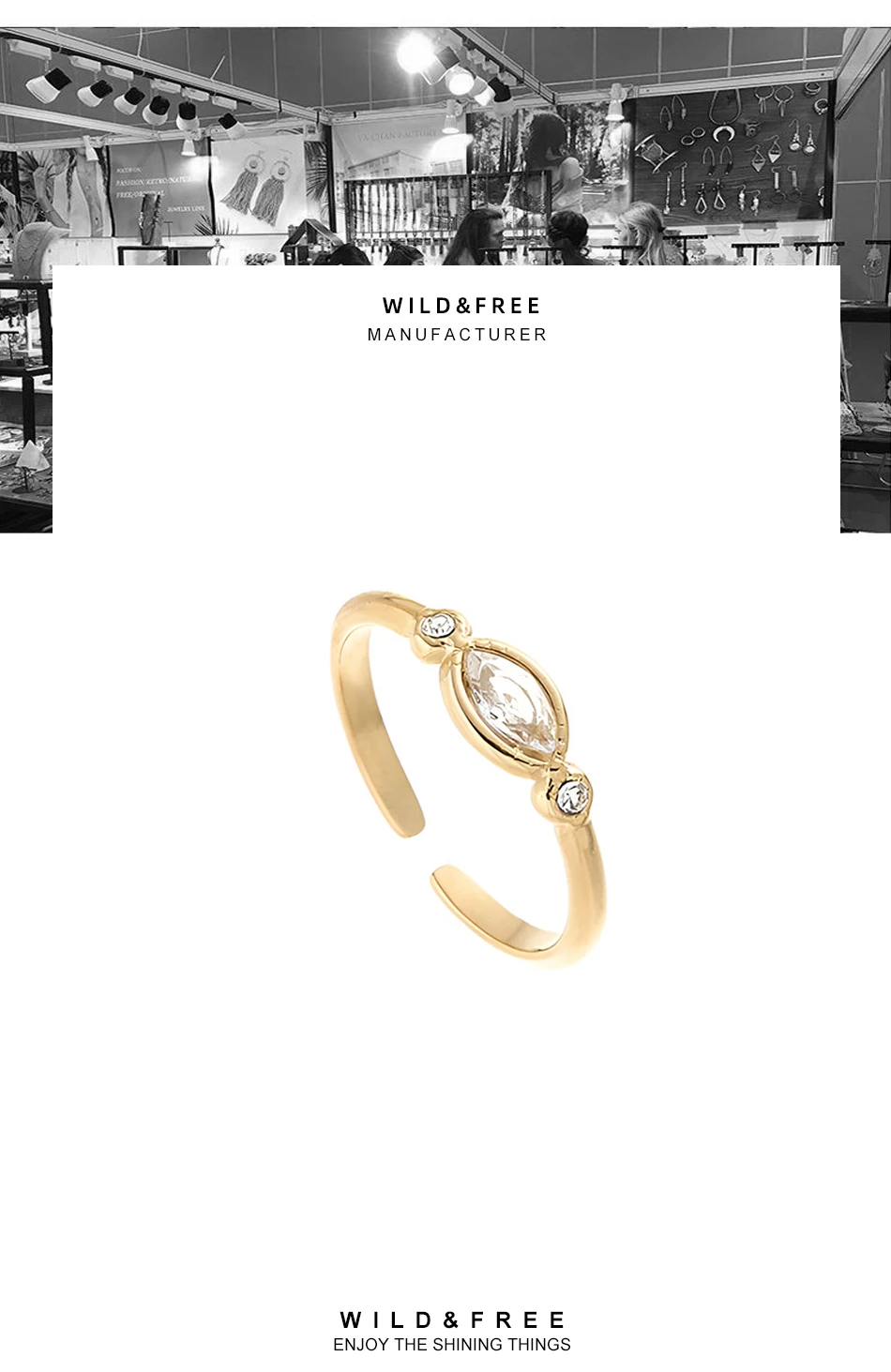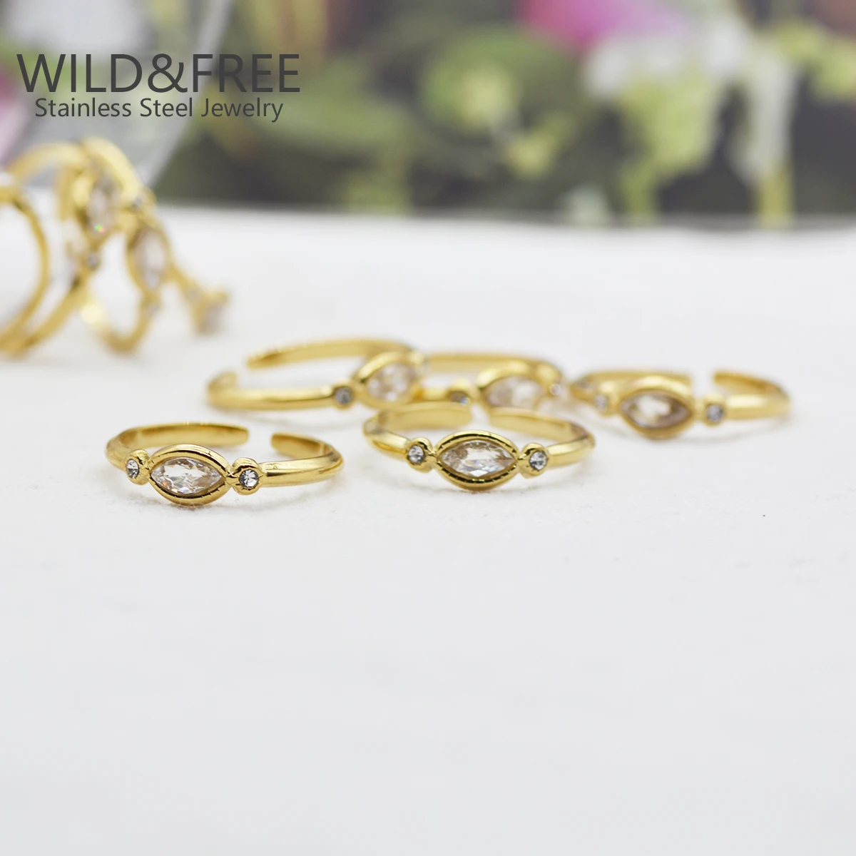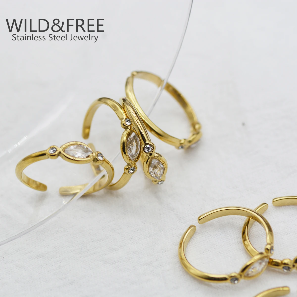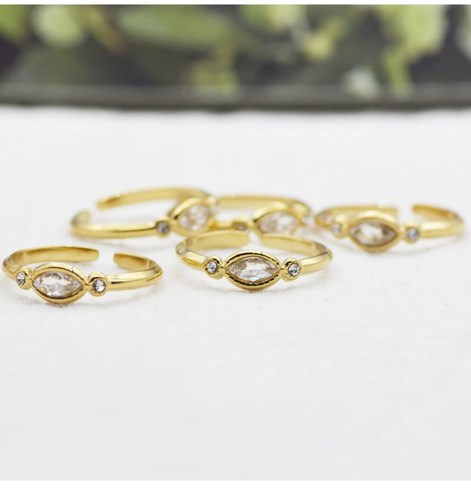Женское кольцо из нержавеющей стали с цирконом, регулируемое Открытое кольцо с золотым покрытием
