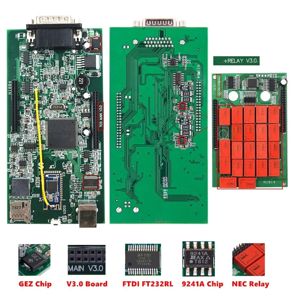 Плата V3.0 OBD2 TCS Pro NEC, реле с Bluetooth-сканером 2017.R3 TCS ...