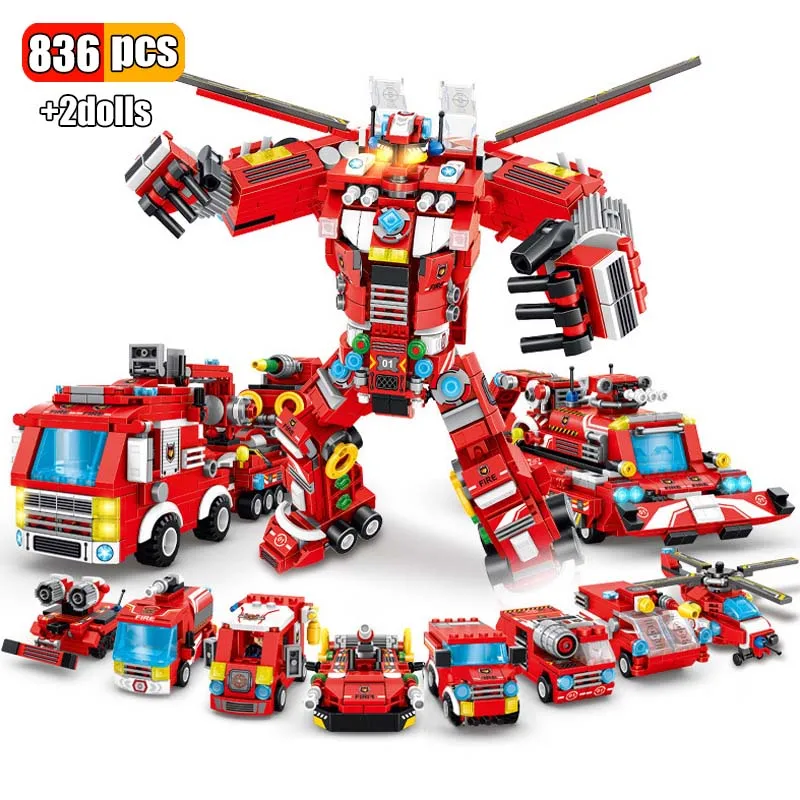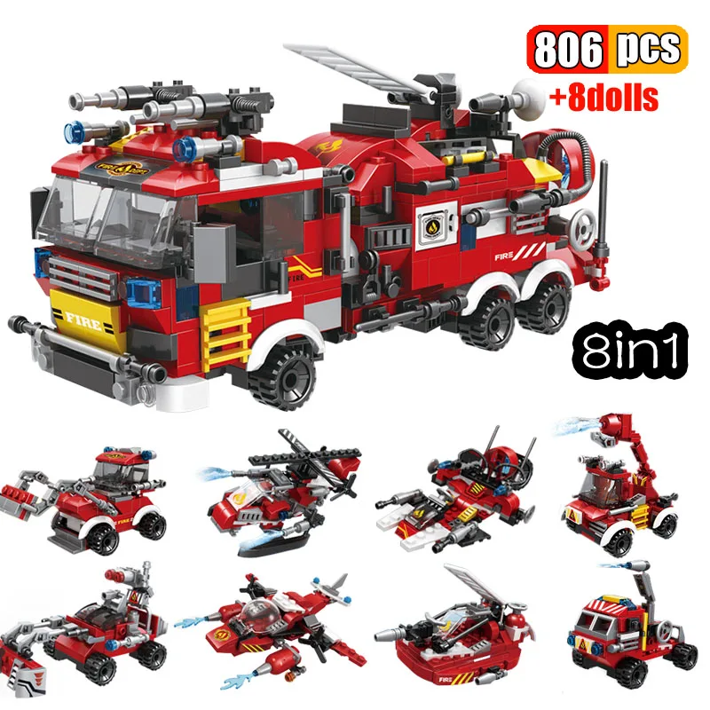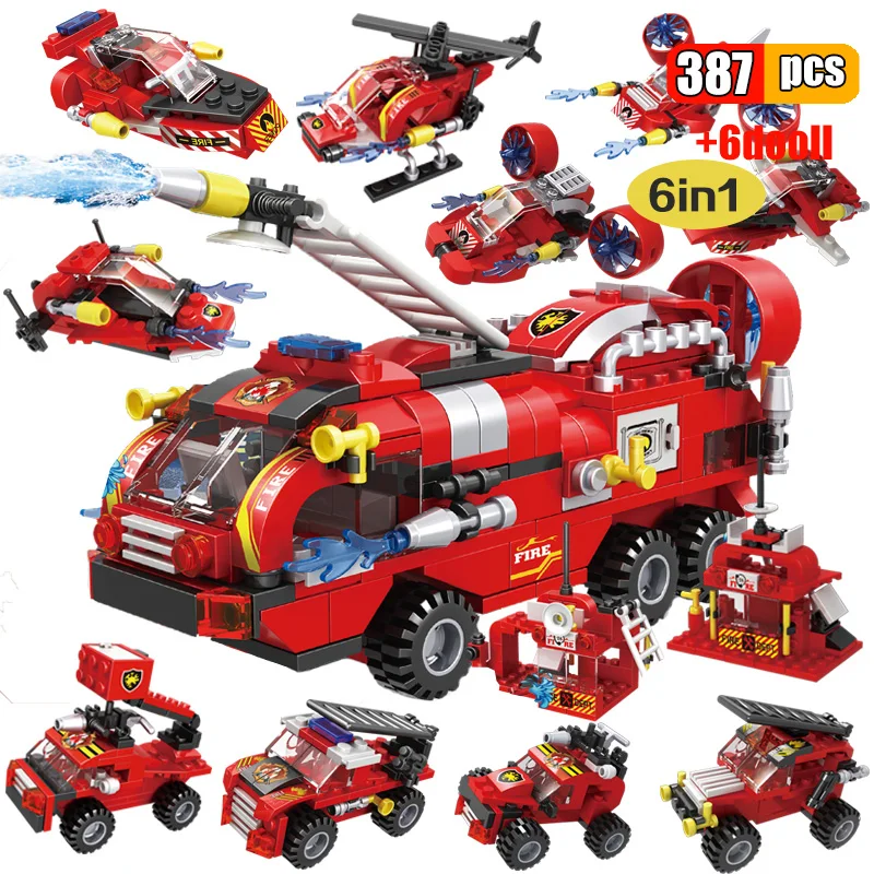387 шт. 6 в 1 пожарные автомобили, строительные блоки, автомобиль, ...