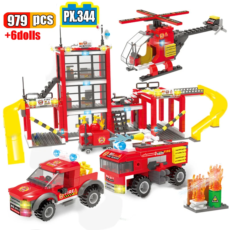 Городской пожарный салон, здание раньше, пожарный двигатель, пожарный самолёт, развивающие кирпичи, игрушки для детей