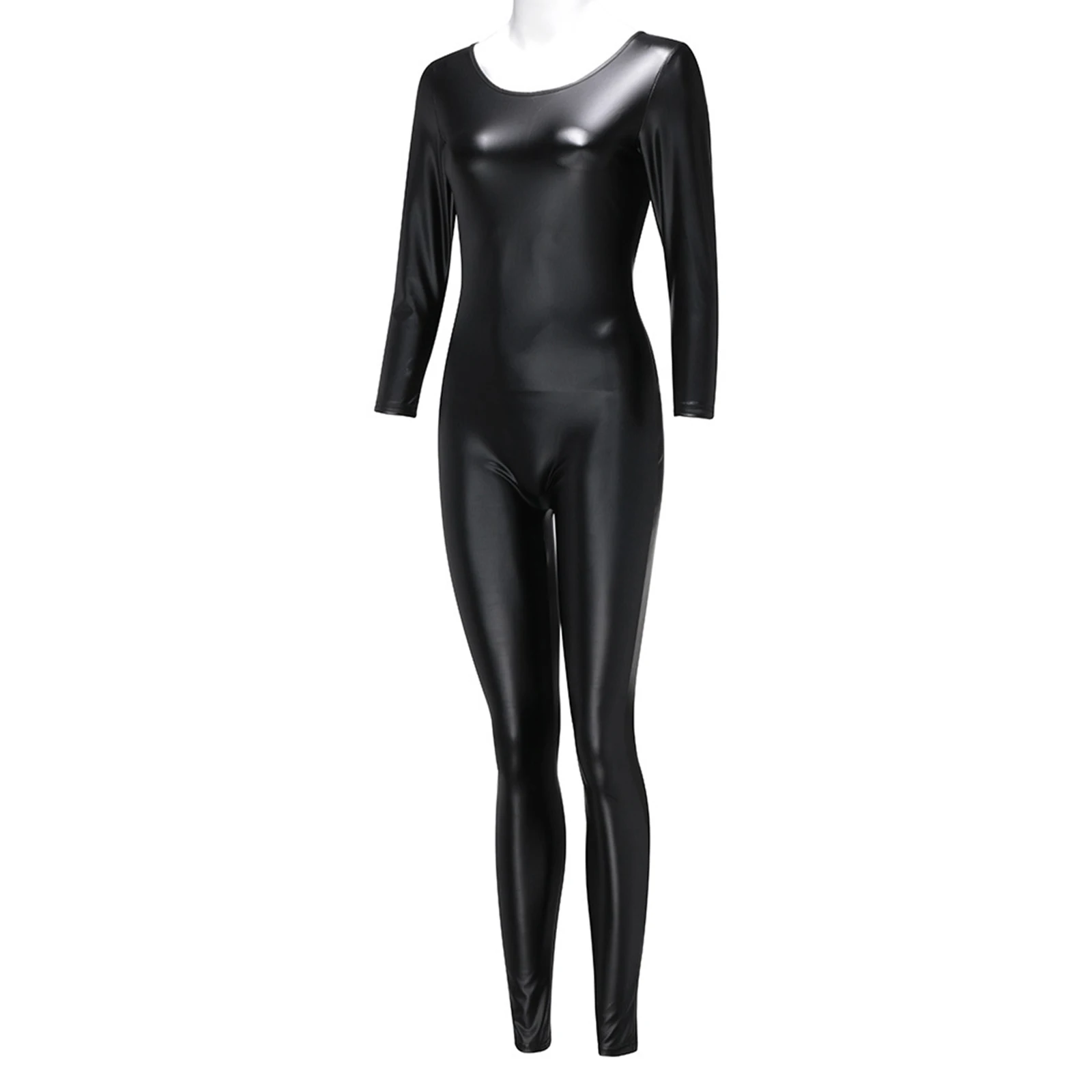 Женский комбинезон из искусственной кожи, с длинным рукавом и невидимой молнией