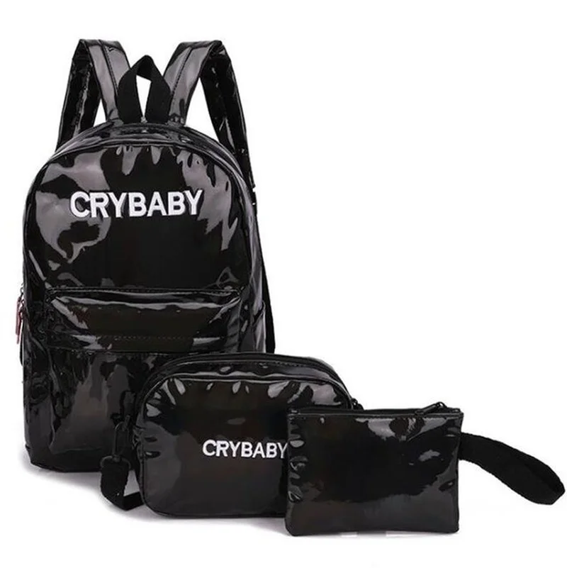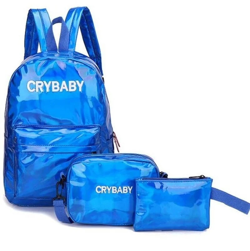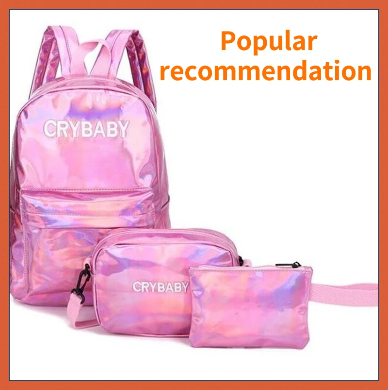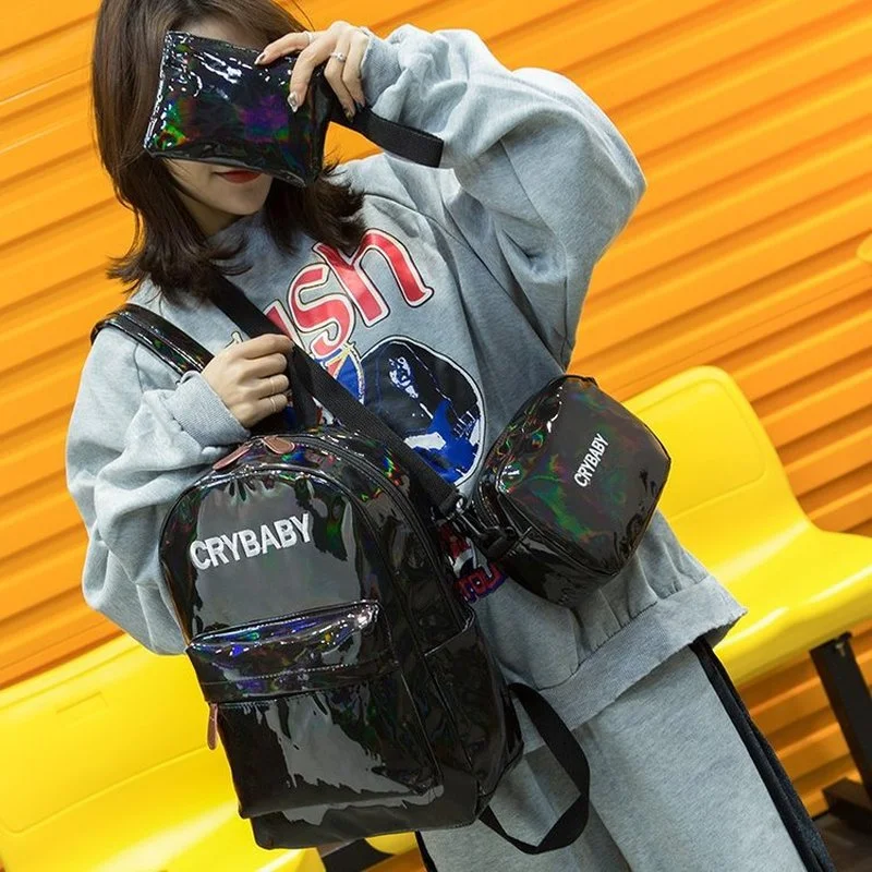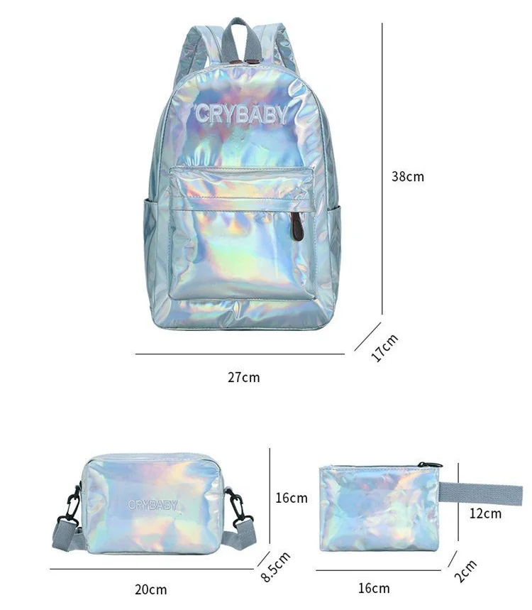 Вышитый патентный рюкзак с надписью Новинка рюкзак с голографическим лазерным покрытием, школьная сумка + сумка через плечо + пенал, 3 шт.