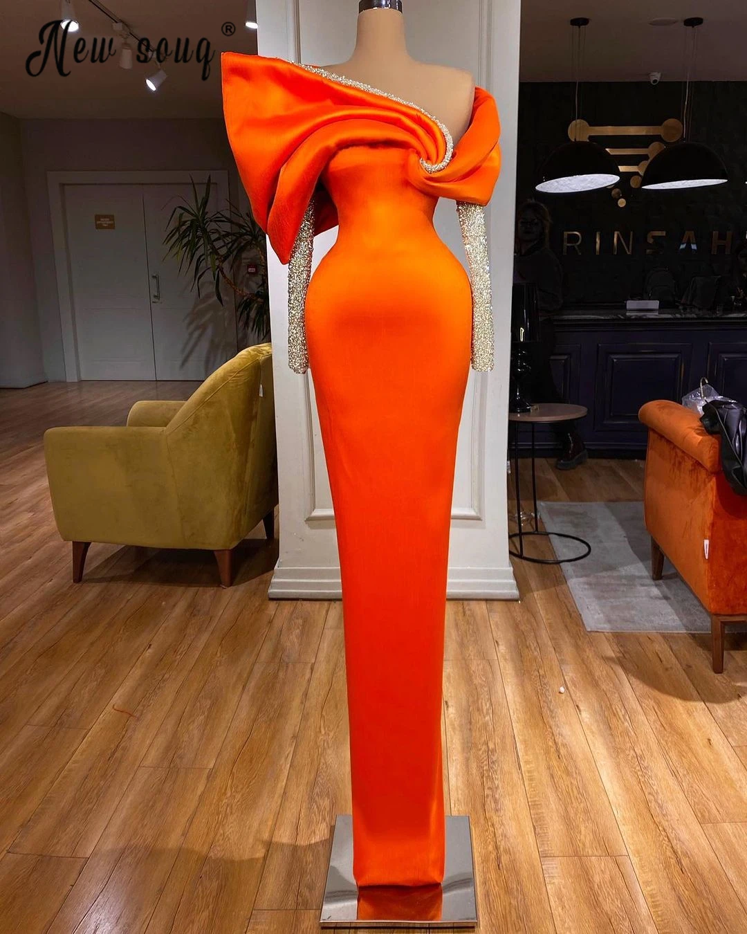 Элегантное оранжевое вечернее платье русалки с бисером для женщин 2022 новейшее длинное платье в пол с блестками Vestido De Novia