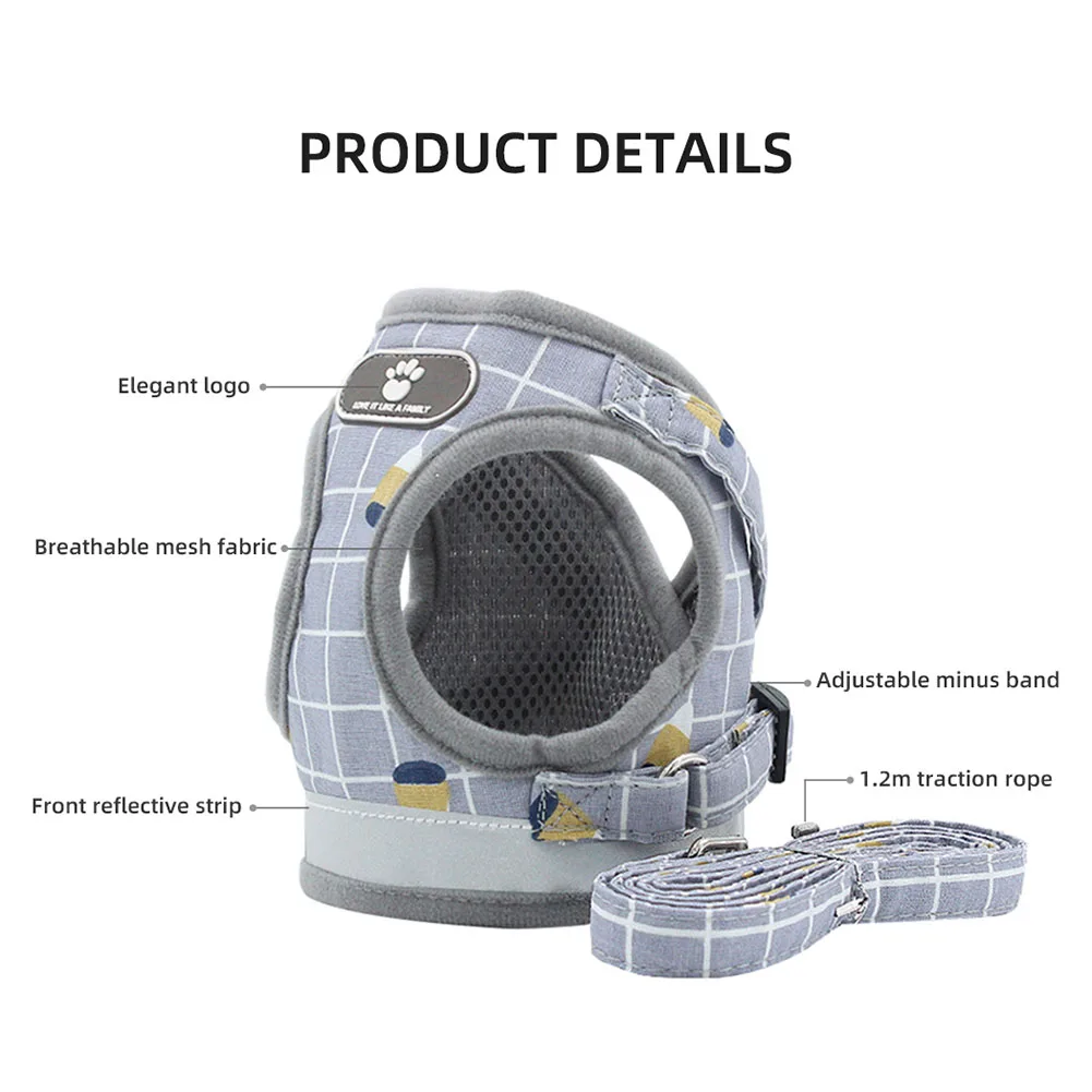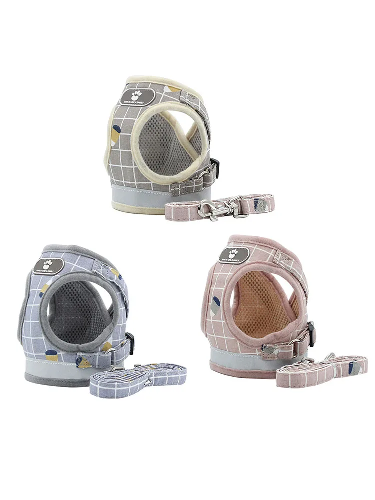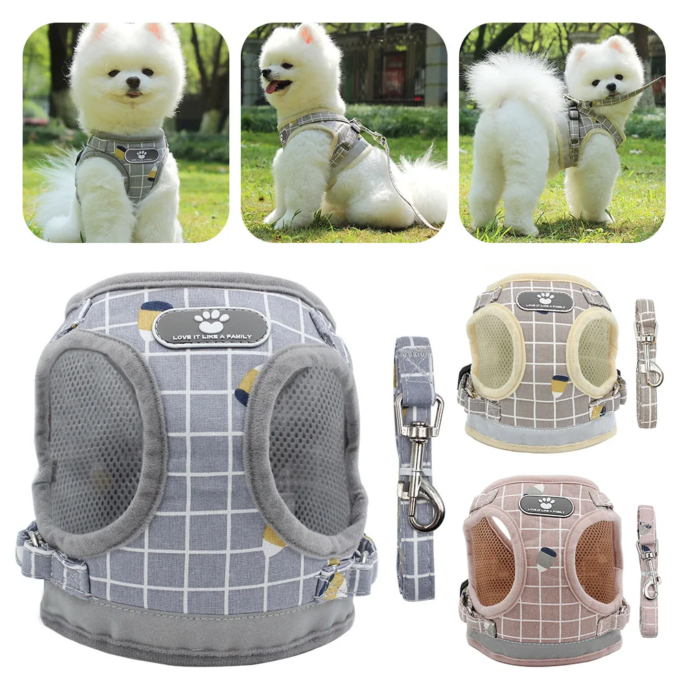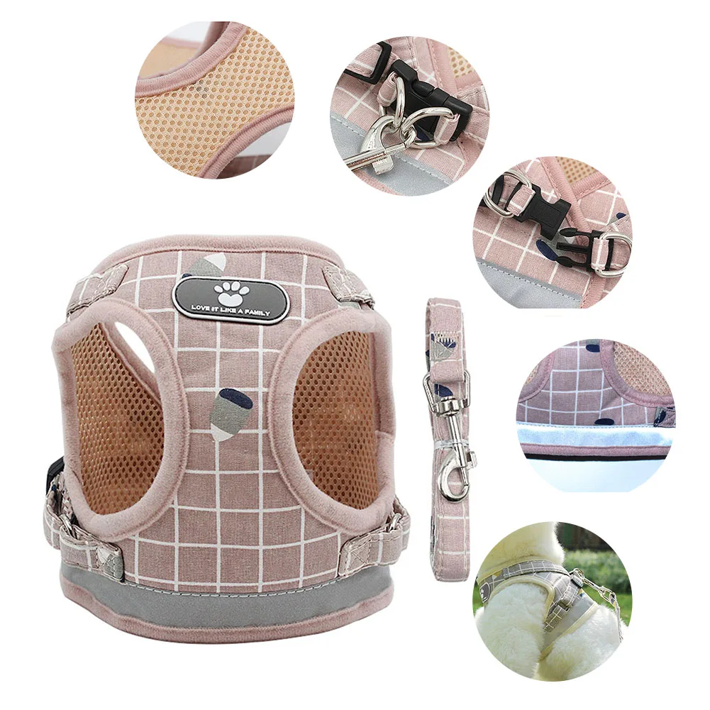 Шлейка для собак с поводком Дышащий крепкий крючок Прочный жилет Жгут Светоотражающие ремни Для маленькихсредних щенков Легко контролировать