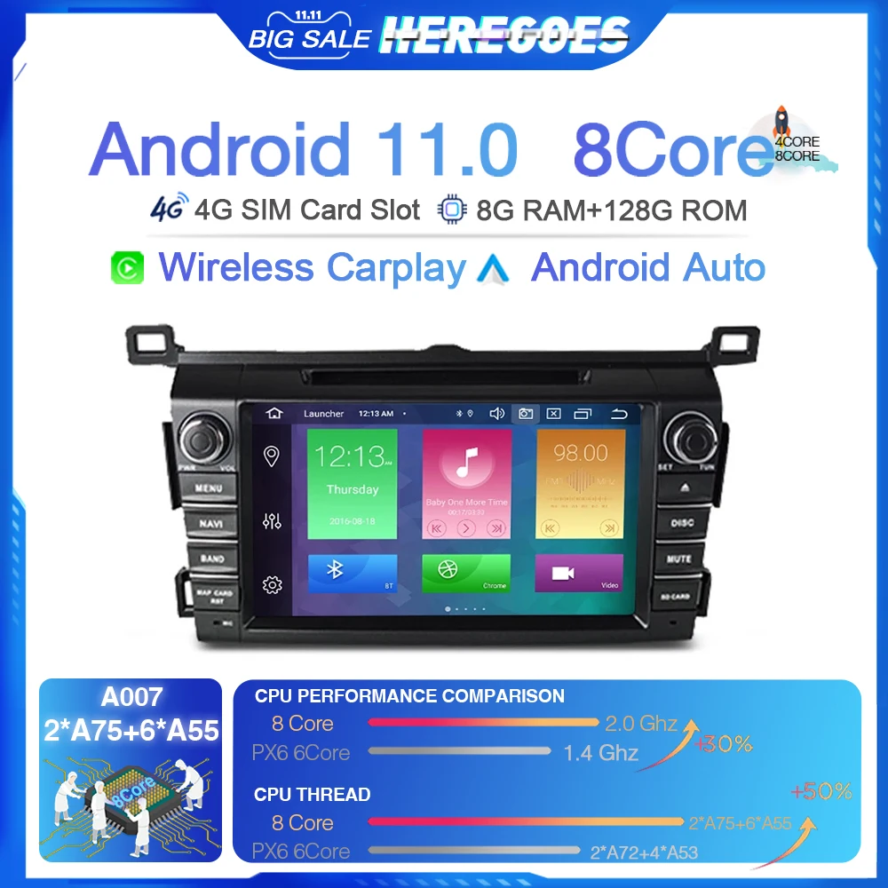 Автомобильный DVD-плеер Carplay 2 Din Android 11,0 для Toyota RAV4 ...