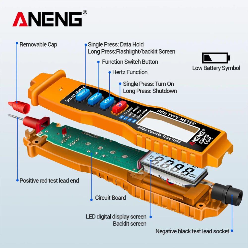 Мультиметр ANENG A3003 цифровой ручка с вольтметром, Вольтметр пере...