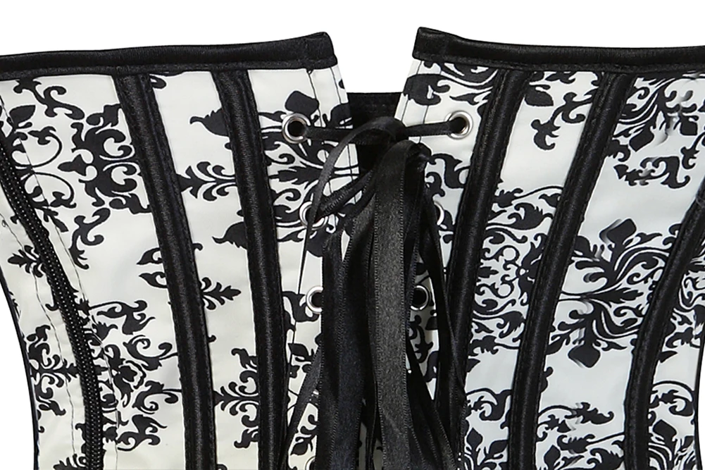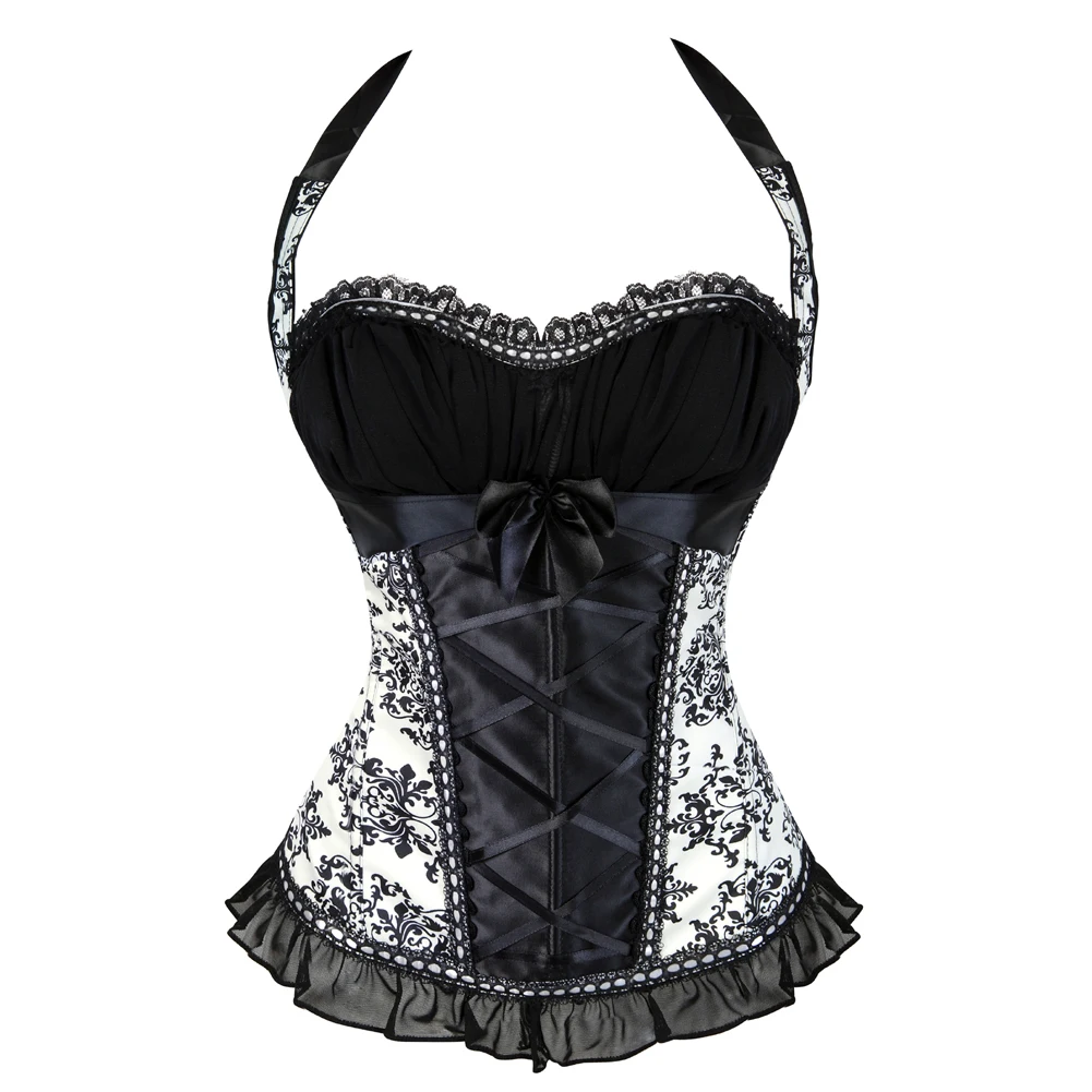 Корсет сексуальный кружевной атласный цветочный принт на шнуровке корсет на молнии Холтер бюстье Черный винтажный викториано Бурлеск Женский корсет Топ