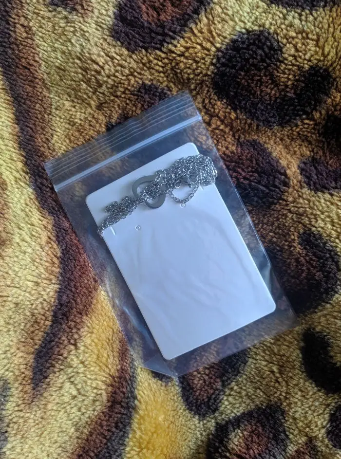 Ожерелье красивое. Продавец связался со мной, чтобы спросить, что я хочу, чтобы они выгравировали в сердце.