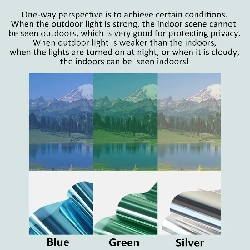 Односторонняя пленка для окна с разными цветами может предоставить несколько вариантов, чтобы вы могли наслаждаться солнечным светом без ущерба для вашей конфиденциальности в помещении в дневное время.