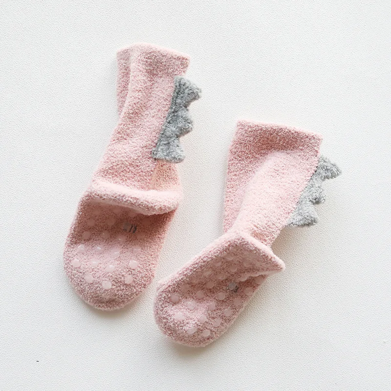 Зимние нескользящие носки для младенцев, коралловые бархатные носки для новорожденных, милые Мультяшные носки для малышей с динозаврами, Детские теплые носки для пола