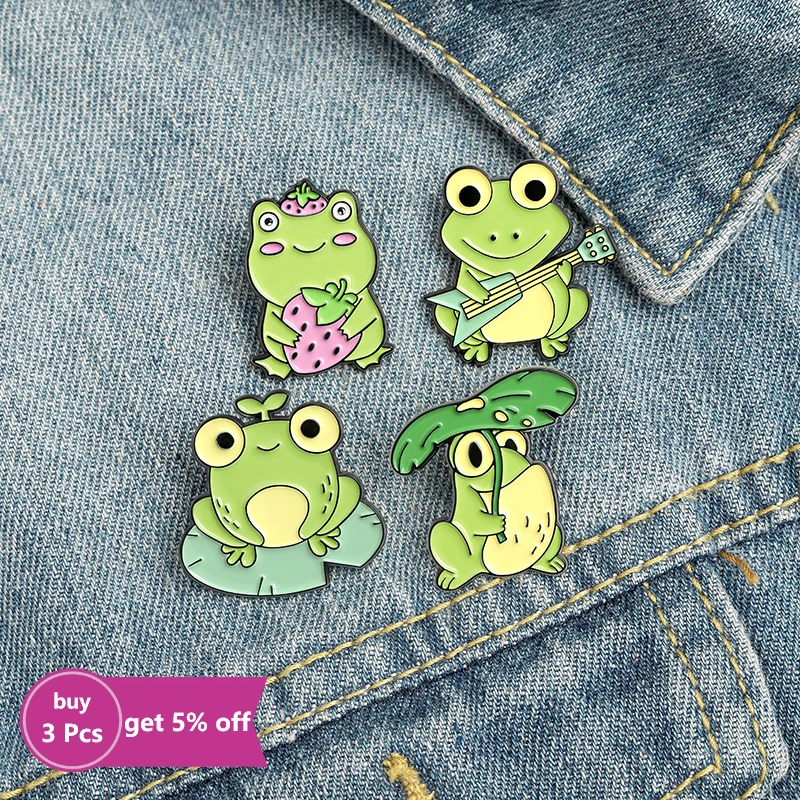 Эмалированные булавки в виде милой лягушки, зеленые броши в виде мультяшных животных, рюкзаки, одежда, лацкан, блестящее ювелирное изделие, подарок, оптовая продажа, Прямая поставка