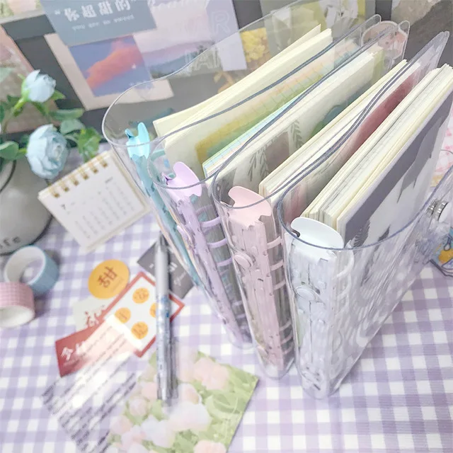 A6 прозрачный ПВХ переплет карманы свободный лист Обложка для ноутбука Макарон цвет 6 отверстий наличные бюджет конверты планировщик дневник школьный журнал Канцтовары