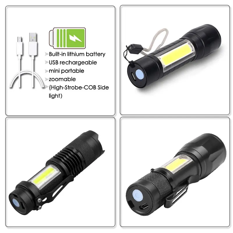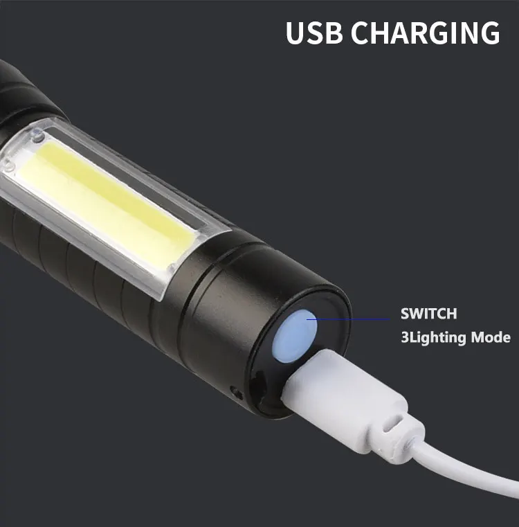 Портативный светодиодный фонарик с зарядкой по USB, COB + XPE встроенный аккумулятор, тактический фонарь, 3 режима работы, аварийный светильник
