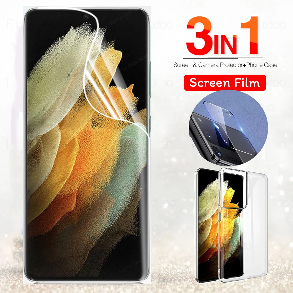 Чехол-подушка безопасности 3 в 1 для Samsung Galaxy S10 S20 S21 S22 Plus Note 20, ультра 5G, мягкий чехол из ТПУ, чехол с гидрогелевой пленкой, задняя крышка для объектива