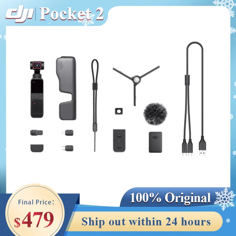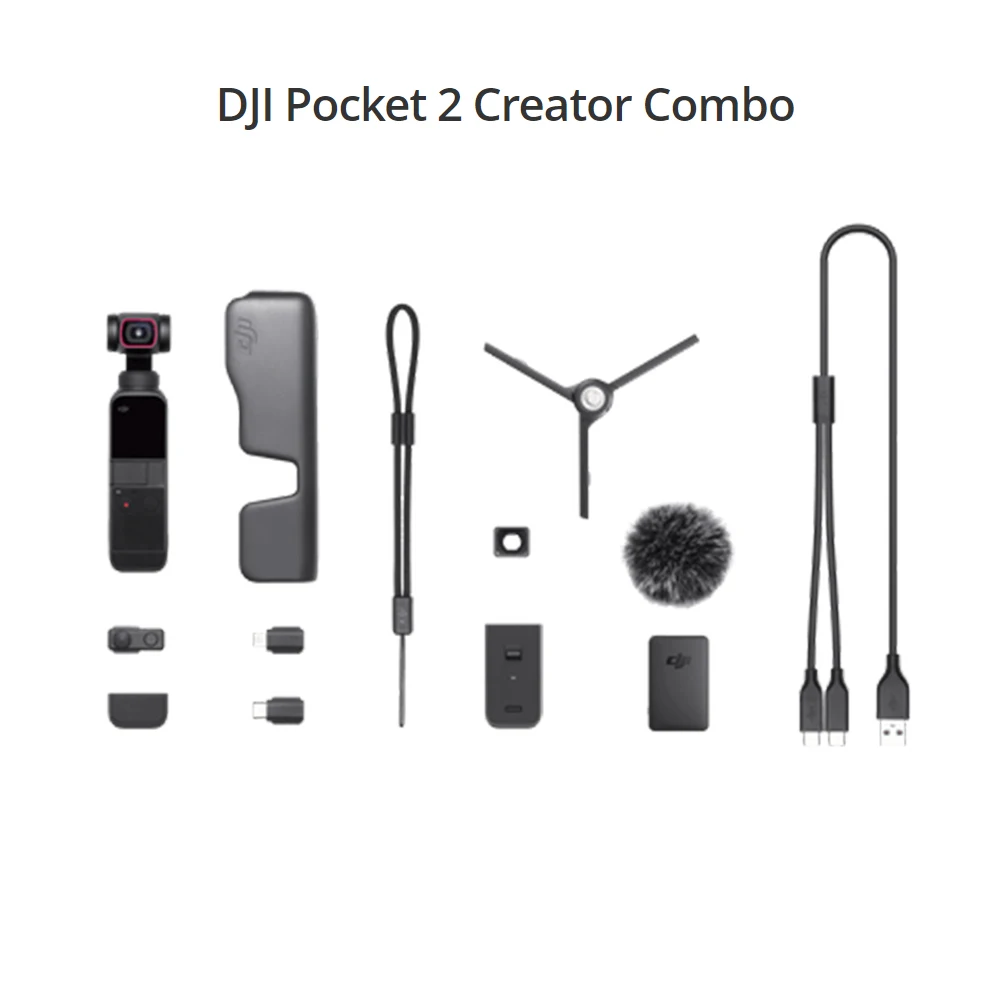 DJI Pocket 2 × 1Мини-ручка управления DJI Pocket 2 × 1Чехол для DJI Pocket 2 × 1Крепление для штатива DJI Pocket 2 (1/4 ") × 1DJI ремешок на запястье × 1Адаптер для смартфона (Lightning) × 1Адаптер для смартфона (USB-C) × 1DJI USB сплиттер зарядный кабель (Type-A-Type-C) × 1Беспроводной микрофонный передатчик DJI × 1DJI беспроводной микрофон ветровое стекло × 1DJI Pocket 2 Do-It-All Handle × 1DJI Pocket 2 широкоугольный объектив × 1DJI Карманный 2 микро штатив × 1