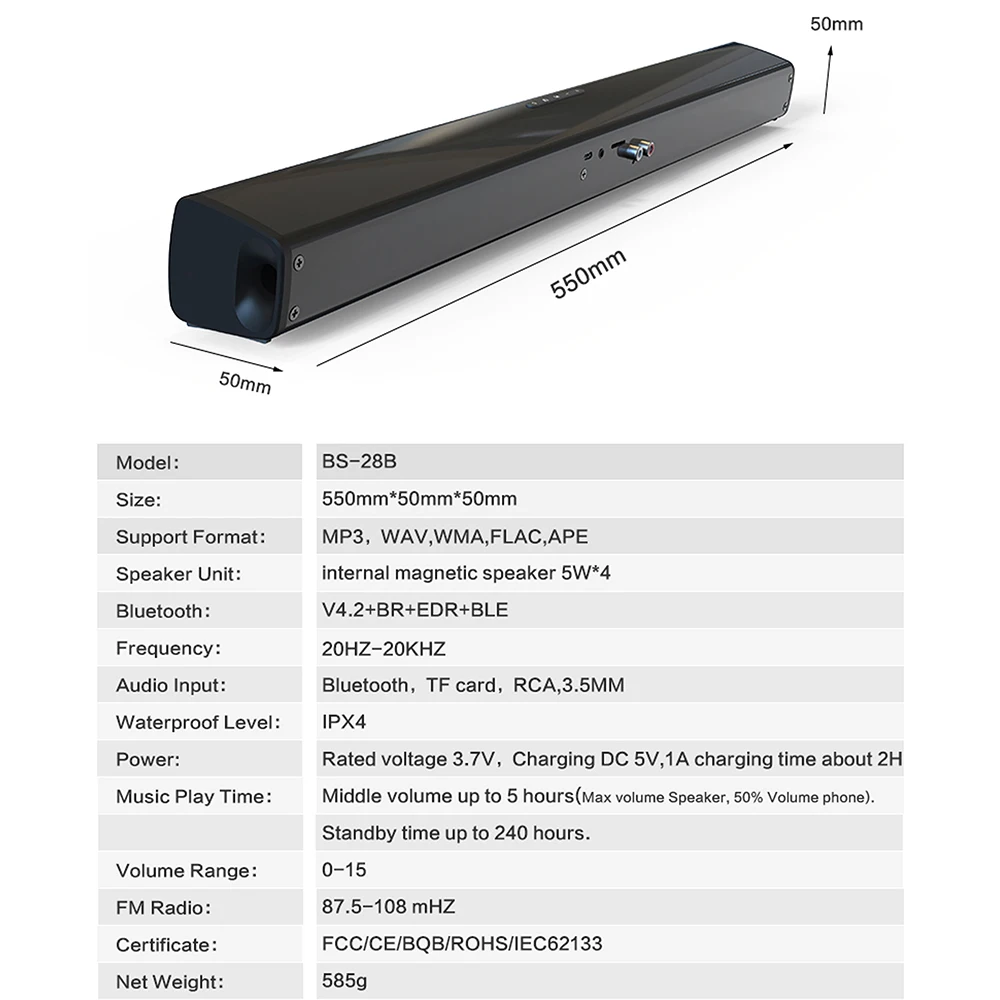 BS-28B, 20 Вт, звуковая панель, ТВ, проводная, беспроводная, Bluetooth, динамик, домашний, объемный, Саундбар для ТВ, ПК, домашний кинотеатр, динамик, FM бумбокс