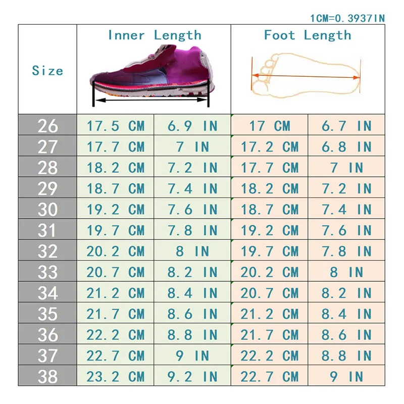 Размер E26: 17 см, размер E27: 17,2 см, размер 28: 17,7 см, Размер 29: 18,2 см, размер 30: 18,7 см, размер 31: 19,2 см, размер 32: 19,7 см, Размер 33: 20,2 см, размер 34: 20,7 см, размер 35: 21,2 см, размер 36: 21,7 см, размер 37: 22,2 см, размер 38: 22,7 см