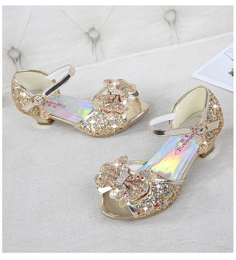 Сандалии детские из кожи с блестками, босоножки принцессы на высоко...